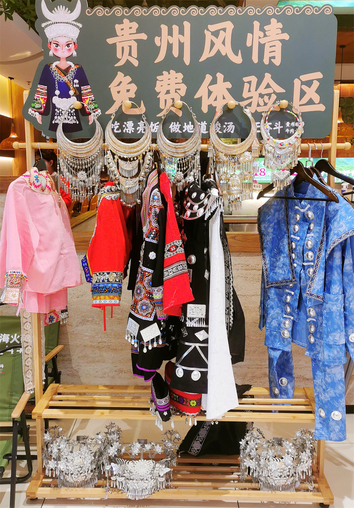 吃完火锅,一口火炬冰淇淋下肚,口腔里的酸麻辣意瞬间消散。走到店门口的贵州风情免费体验区,换上民族服装、戴好配饰,拍一张纪念照——这场寻味贵州的旅程,终于画上了圆满的句号。