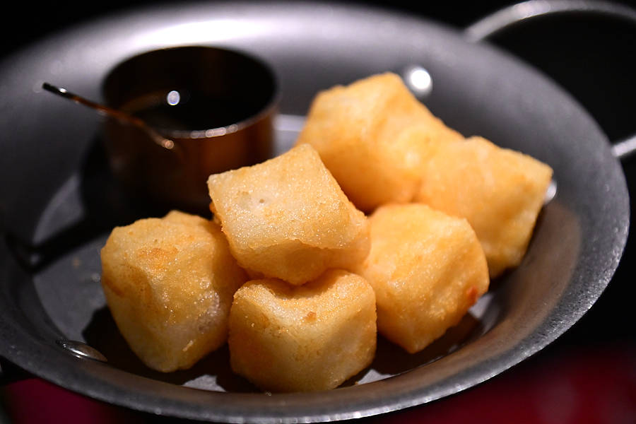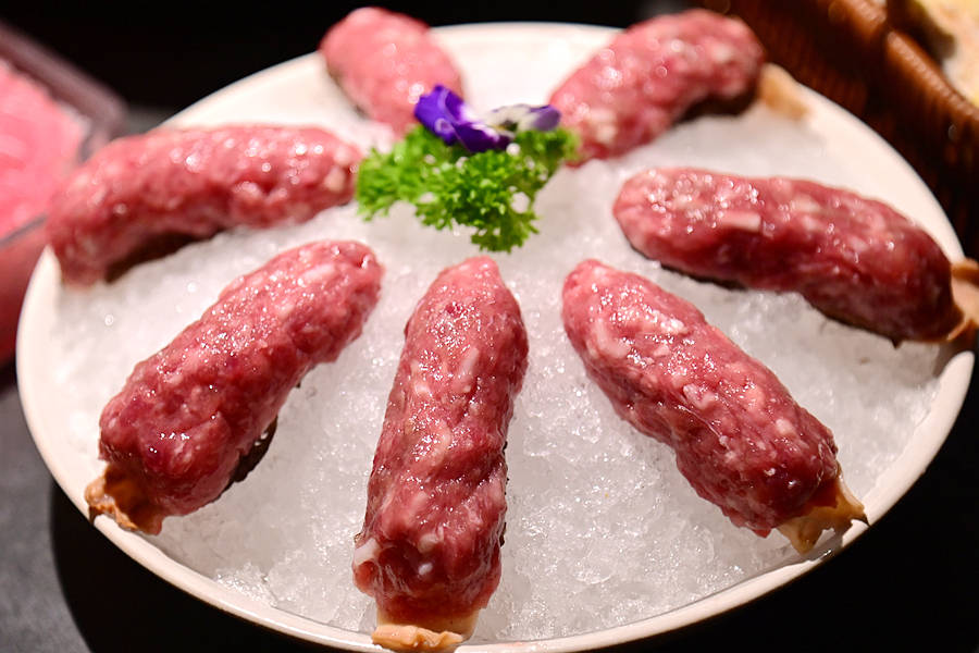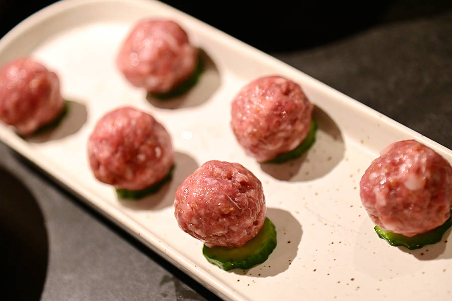 黑松露马苏里拉芝士虾滑,虾滑的鲜美、黑松露的香浓、芝士的香甜融合在一起,拉丝超满足!