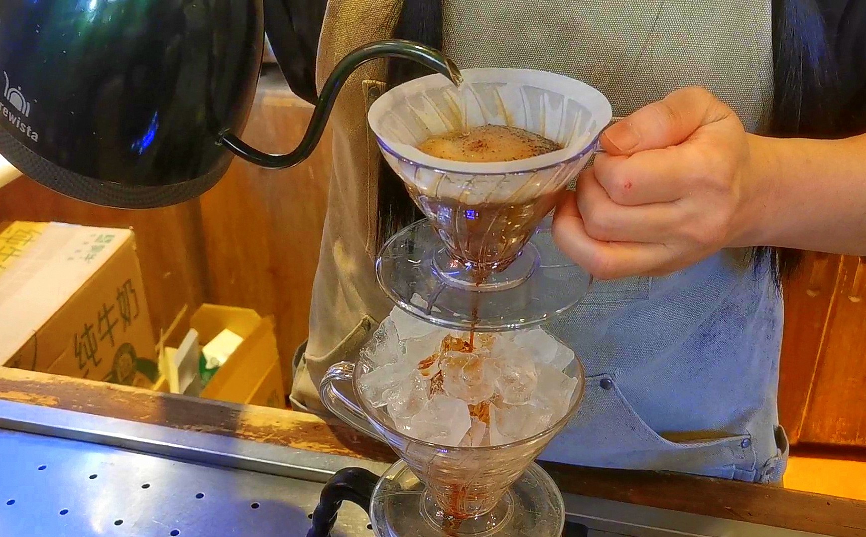 虽是初冬时节,云南的天气却依旧带着燥热。我们索性学着年轻人的样子,点了冰咖啡。咖啡师将现磨的咖啡粉倒入器皿,用开水冲泡后,浓郁的咖啡汁液顺着漏斗,缓缓流入盛着冰块的杯中,最后再倒入专用咖啡杯里。醇厚的香气瞬间扑面而来,入口更是醇香爽滑,回味无穷。一杯咖啡下肚,倦意一扫而空,精神也为之一振。就像这场旅行,纵然奔波劳累,却也因这满溢的新鲜感,变得格外值得。