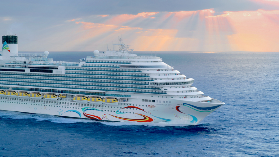 目前,爱达邮轮旗下运营的两艘大型邮轮——首艘国产大型邮轮爱达·魔都号和“艺术之船”爱达·地中海号。第二艘国产大型邮轮爱达·花城号现已实现全船贯通,计划于2026年完成交付并在广州南沙开启国际航线。