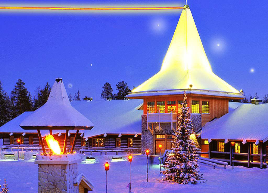 圣诞老人和他的精灵们在家门前建造了一座心愿桥,在桥上虔诚地许下心愿,圣诞老人是会听到并助你梦想成真的。圣诞老人的家里简单又温馨,衣柜里几件简单的外套,厨房中不多的餐具,屋中最亮眼的地方,要算那张朴素的原木书桌。桌上摆放着来自全世界小朋友的书信,稚嫩的图画和文字,透出对圣诞老人浓浓的爱和深深的期盼。附近有放牧驯鹿的围栏,圣诞老人的驯鹿宝贝们在围栏逍遥自在地生活。访客可以用驯鹿最爱吃的冻土植物作为见面礼,它们就会非常热情的过来和人们打招呼。
