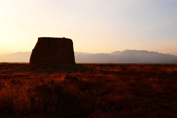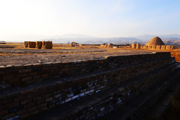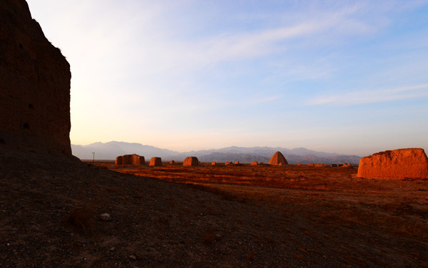夕阳下,李元昊的爸爸以及爸爸的爸爸的陵墓显得更苍暮。