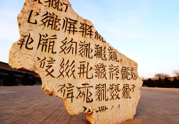 再往前参观,是西夏碑林,路的两侧有一块块竖着的石碑,刻着各种字体,汉字、西夏文并列,书法爱好者的福音。