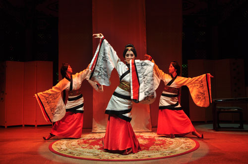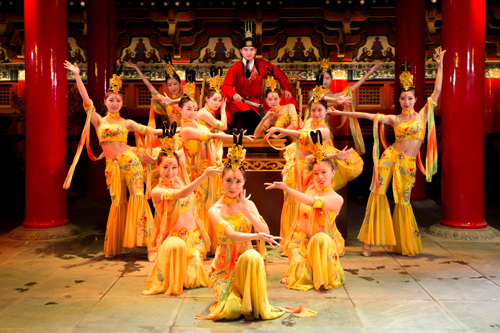 大唐盛世,万邦来朝。盛唐的气度,以箫之雅沉、舞蹈之端庄,互相配合表演,《礼仪之邦》将盛唐的日常礼仪舞美化,在翩翩起舞中表现其雍容娴雅。