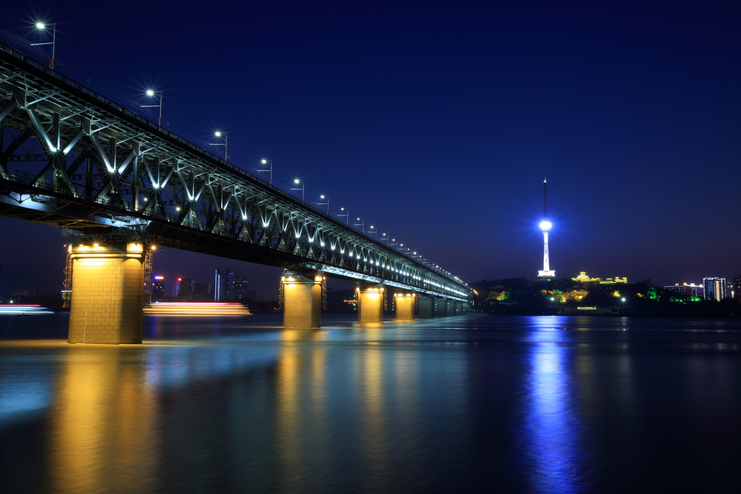 可以泡在浴缸里看窗外的江城夜景、 武汉 长江大桥。