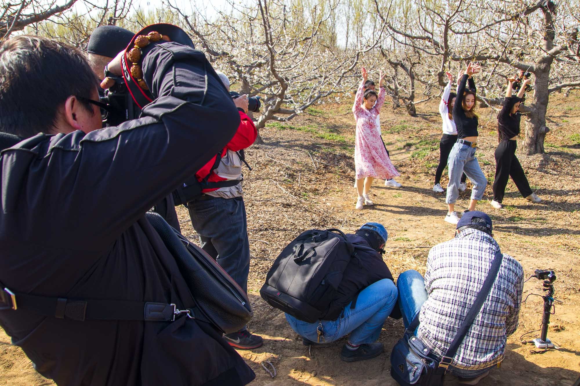 这么漂亮的花间当然少不了美女们和摄影师们的身影。美女们的古装在花间穿梭,像极了一只只漂亮的彩蝶,蜜蜂们在枝头飞舞,旁边还有一群群摄影师在举着相机,用长枪短炮招蜂引蝶,进行着颇具特色的“中国式摄影”。这里的景色是摄影的天堂,也是踏青赏花的圣地。