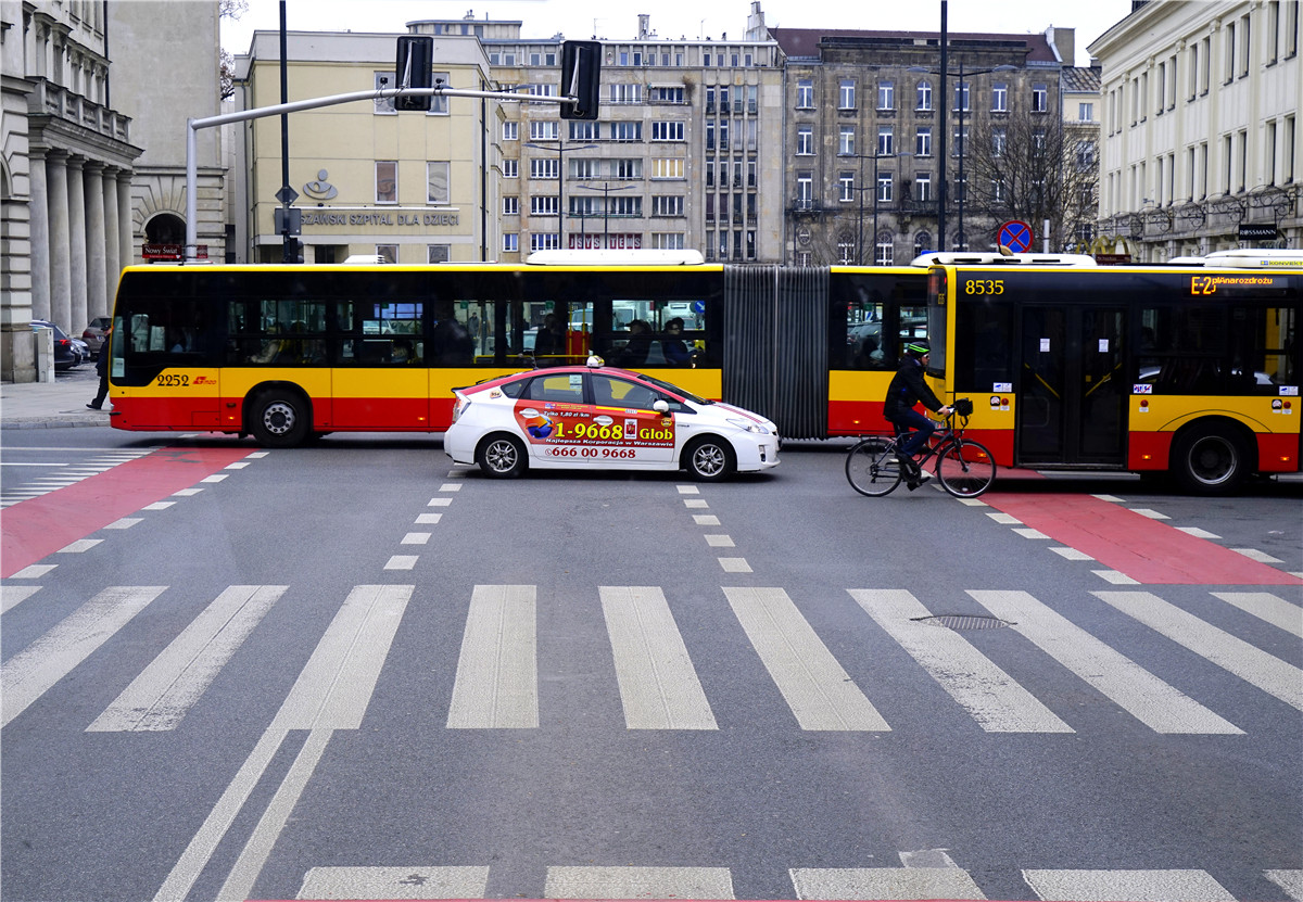 波兰华沙街头的公交车与出租车