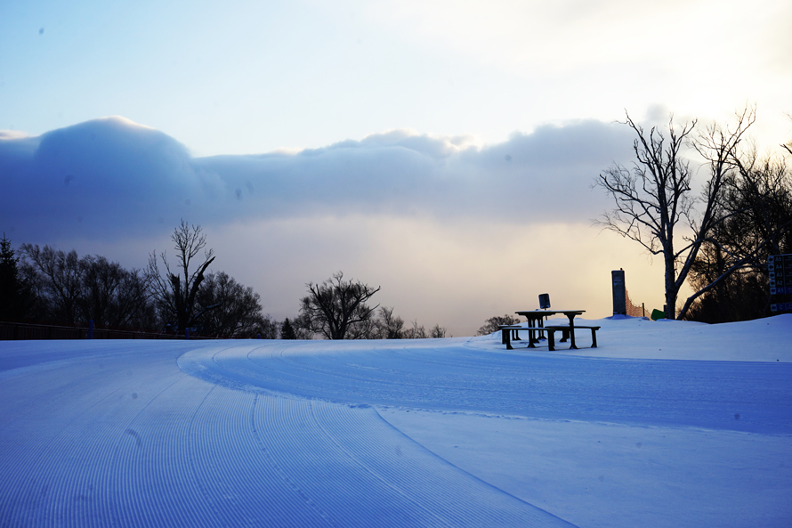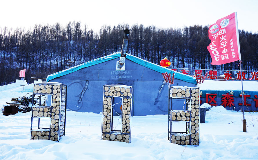 游走在“303工段”,几句颇具时代感的标语和设施,瞬间就将来客“拉”到了热火朝天的年月,“热情似火融冰滑雪”、“激情点燃青春岁月”,看着这些大字,置身雪落千倾中,你会情不自禁地勾勒出工人冒着严寒奋力伐木的场景。