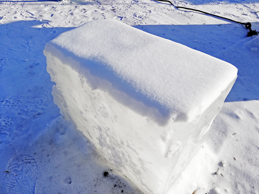 工人大哥笑了,说,用的水,把它们冻在一起。然后他指着面前一排晶莹的墙壁说,这些都是用冰做成的……