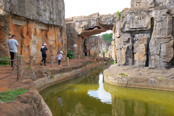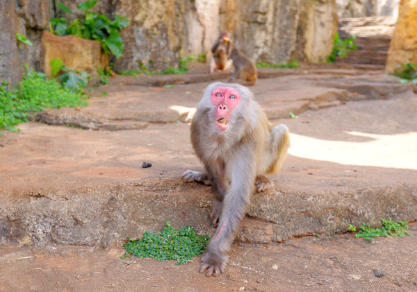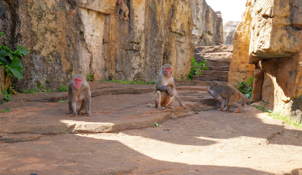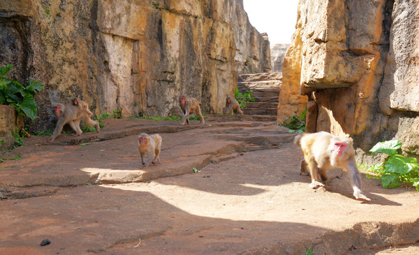 置身于人造猴山,游客于山水间享受与群猴嬉戏的乐趣,所有的烦恼好像都消失了一般,余下的只有笑变形的脸,和笑抽筋的腹。