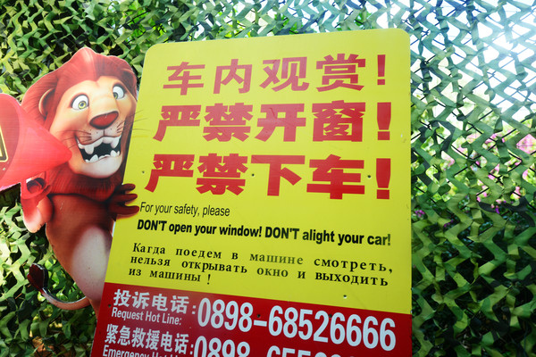 以上看的动物并不稀罕,心跳时刻到了,行车观赏区看的都是猛兽,游客乘坐景区的车游览,也可以驾驶自己的车开进猛兽区,但切记不要乱按喇叭惊动它们,也不要开窗抛食,更不得下车观赏,千万不要像北京野生动物园的女游客那样作死下车……
