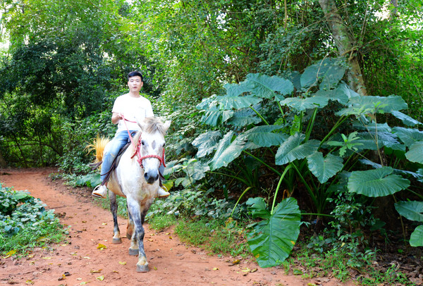 随着出口的铁门合拢,我们驶向马场,体验在热带雨林里骑马的乐趣。