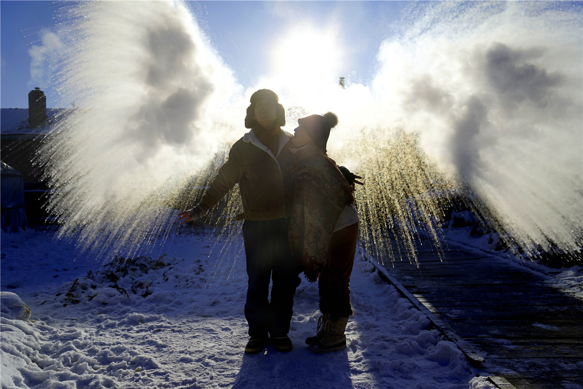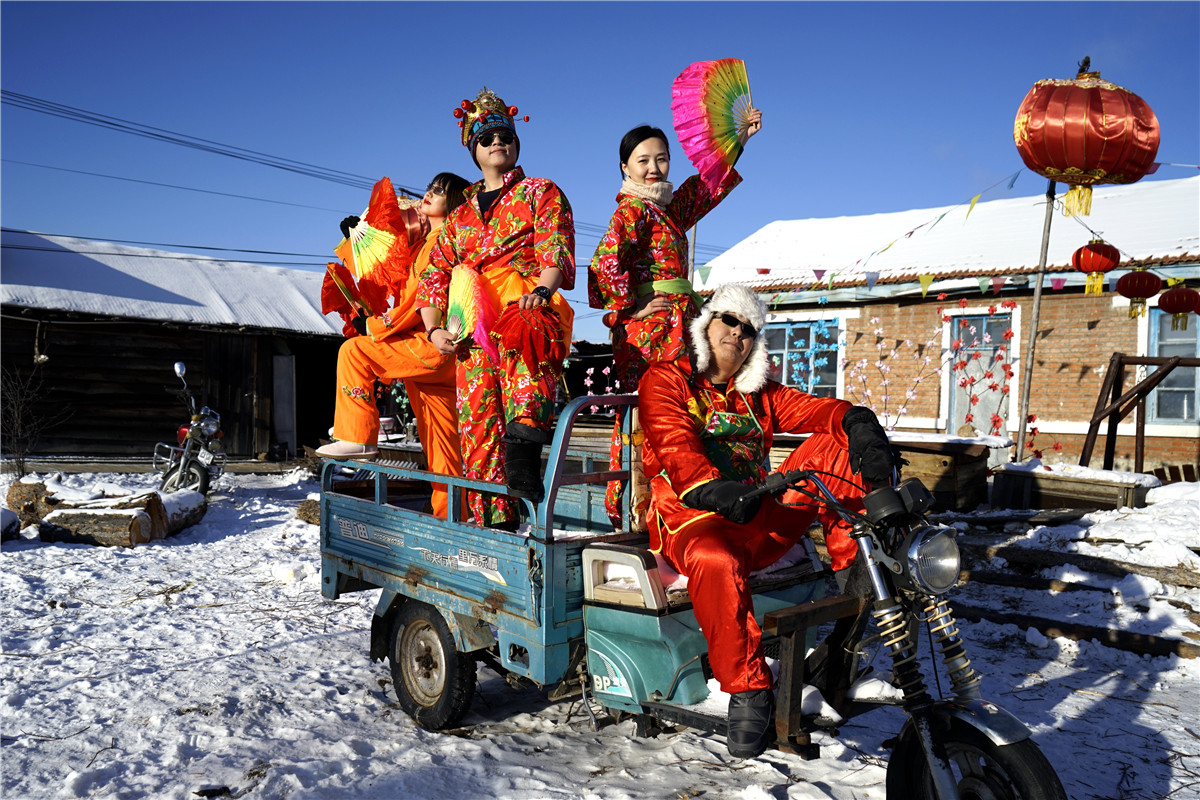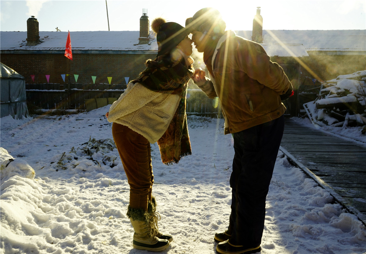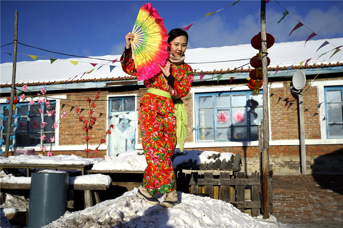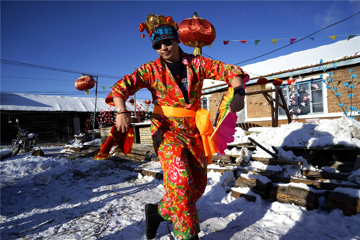 从广西南宁来到北疆的一对旅游达人,在滴水成冰的院子里,插上了金色翅膀。而东北小伙儿转手绢的娴熟表演让周围年轻人跃跃欲试,于是就有了东北大秧歌,有了让人捧腹大笑的错位表演,也有了更多人的参与互动。在这片寒冷的底色中,一群生龙活虎的年轻人在冰雪中越冷越激情……