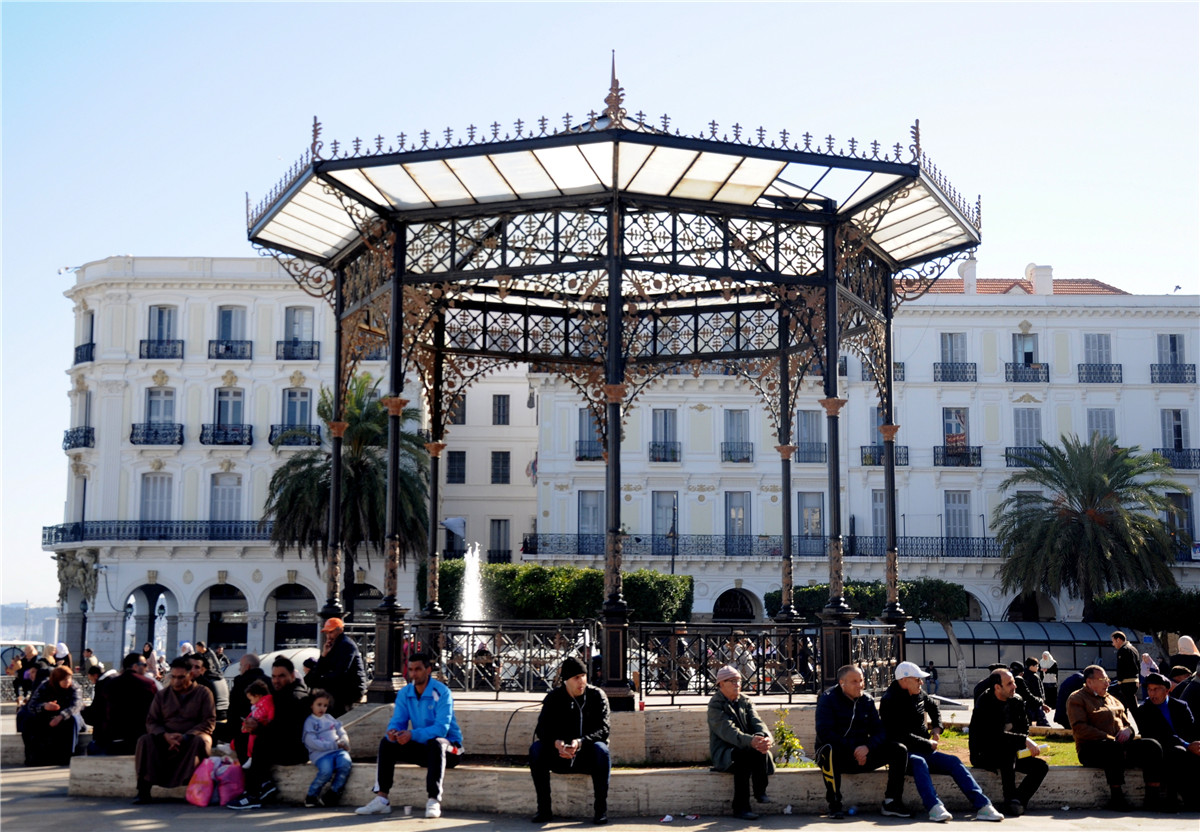 从阿尔及尔地中海沿岸的卡斯巴古城走下来,一片平坦的海湾广场让人眼前一亮。与古城的古朴、陈旧截然不同,这里到处跳动着时尚、现代、光鲜亮丽的元素。