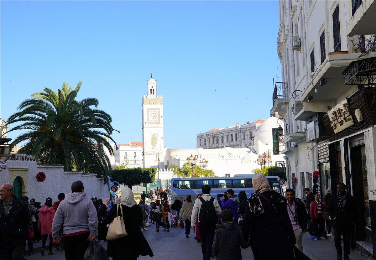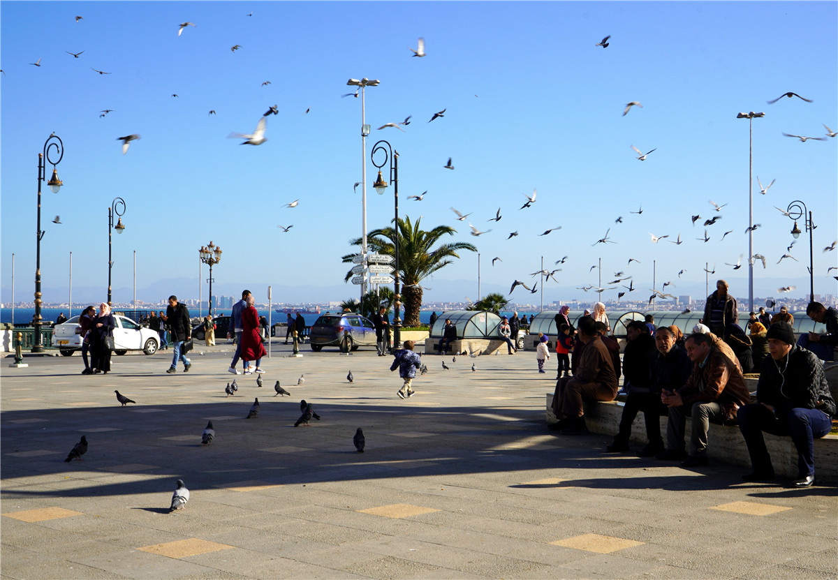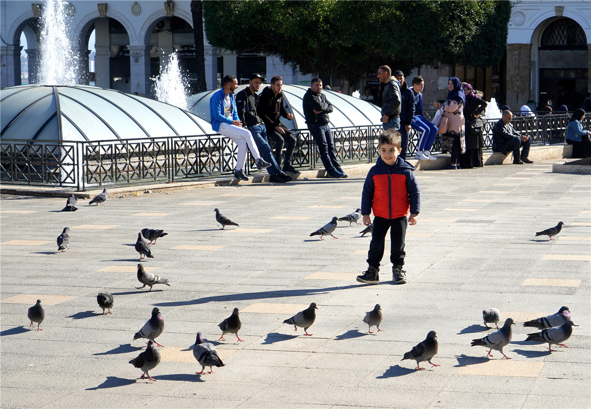 广场中心的鸽子成为孩子们追逐的对象,也成为人们休闲、观景地方,看到中国游人出现,阿尔及利亚人的目光充满了好奇和友好。远在北非地中海沿岸,我们感受到这里的祥和与热闹……