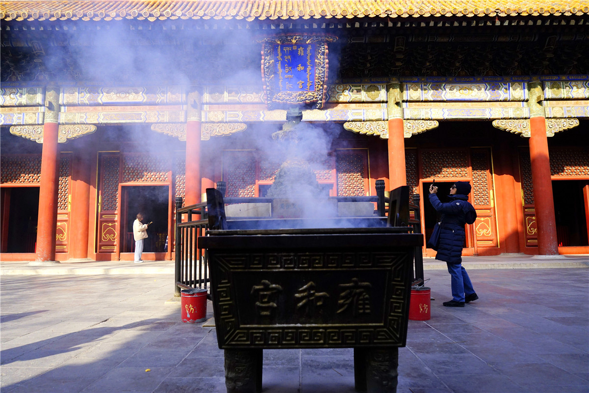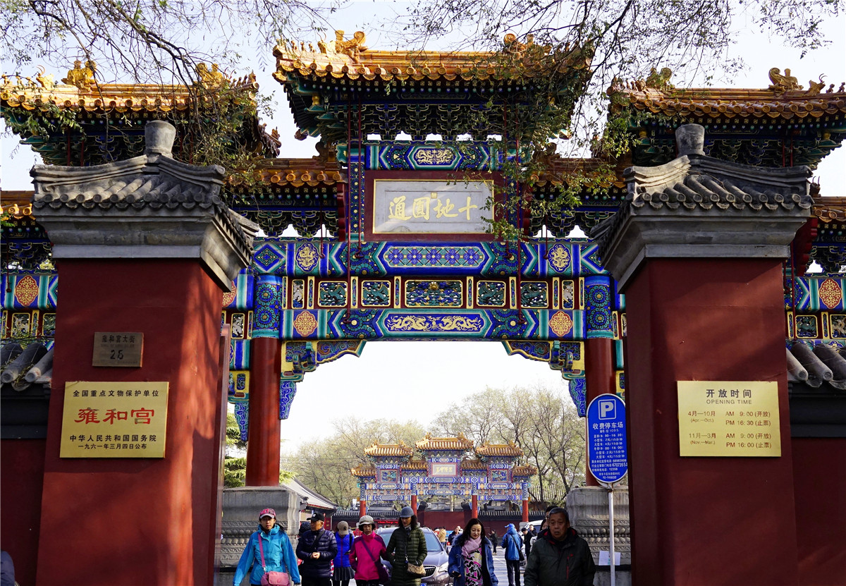 乘公交车经过京城北二环雍和宫桥就可看到路南规整、宏伟、黄瓦红墙的雍和宫。这是京城与紫禁城皇宫一样格制的佛教寺院,也是逛京城的打卡地。