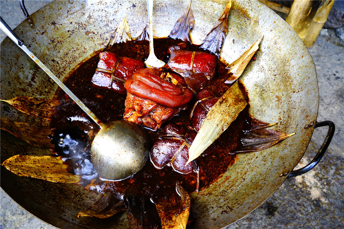 狭窄、幽深的巷子,挤满游客,好似一条移动的彩带。众多的商铺,给这里带来浓重的烟火气,石子上烧烤的香肠,铁锅中炖的猪肘散发着诱人的香味。