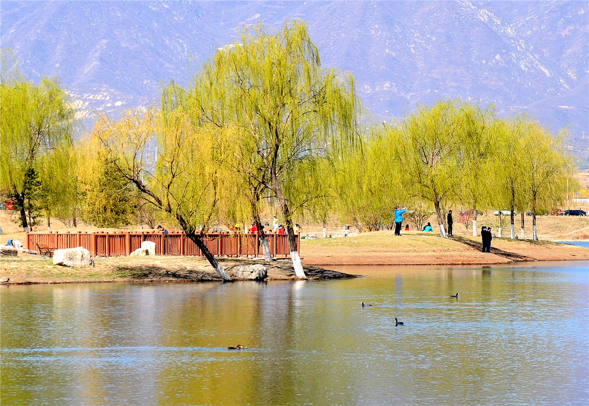 位于大石河上游的红领巾公园,保留了原生态的野趣,远方绵延起伏的燕山山脉,近处几潭碧水成为候鸟栖息之地。白天鹅、青头潜鸭、白骨顶鸡时而光顾的消息,引得四方“打鸟人”频频探访。