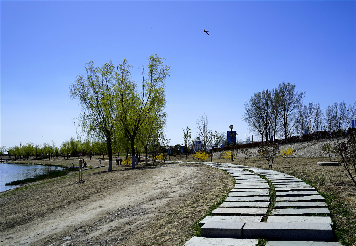 与红领巾公园一桥之隔的夕阳红公园,湿地小径石板路蜿蜒曲折。人们行走于此,近距离地与水亲密接触。在春天鲜花盛开的时候,放飞风筝,接受日光浴、空气浴,增强心肺功能,增强新陈代谢,增强体质。公园里,人们仰望蓝天放飞风筝,憧憬着一年中的希望。