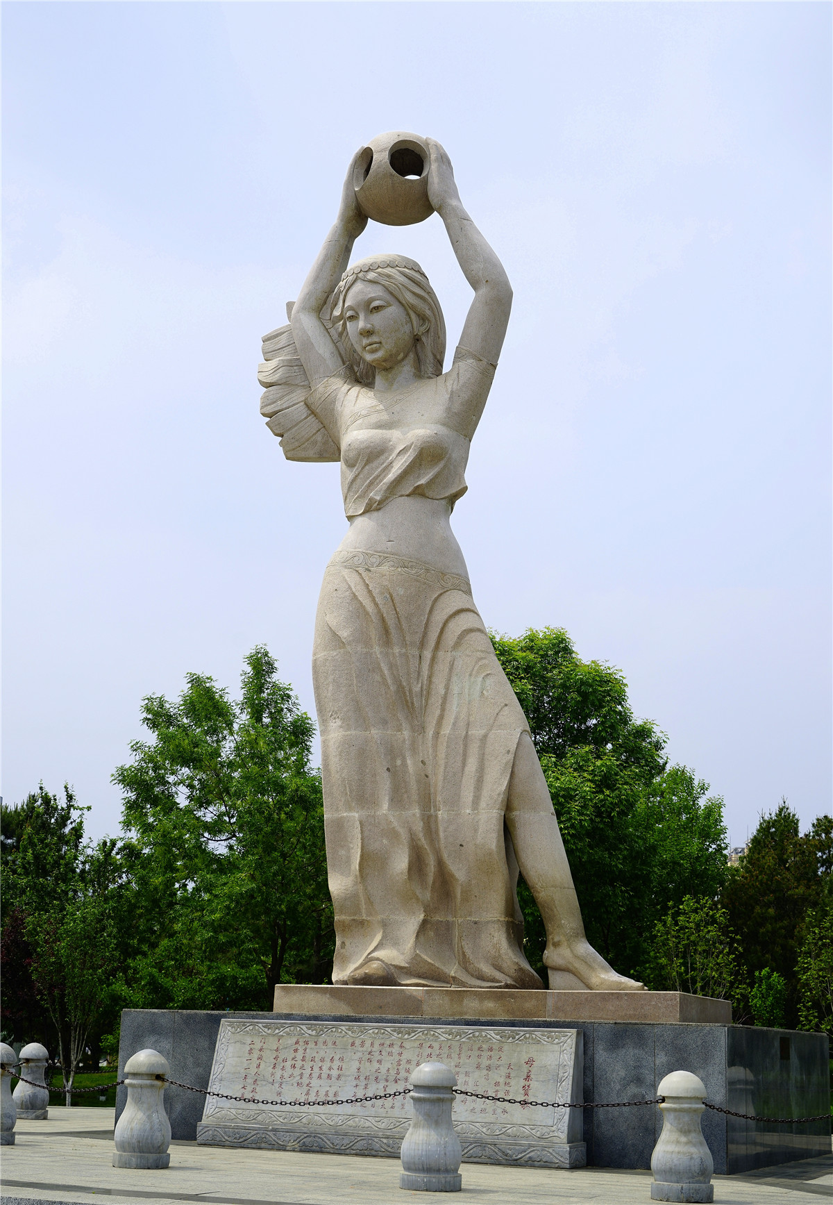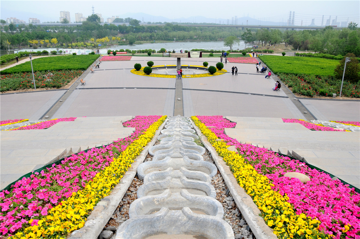 在公园景观中,一座年轻的母亲雕塑吸引着人们的目光。永定河是北京的母亲河,永定河母亲雕塑凸显了这一主题。