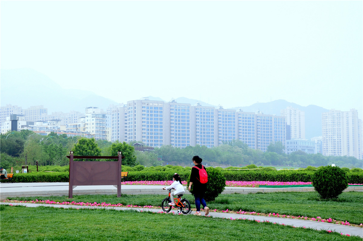 六年前曾经去过这个正在修建的公园,当时园中的永定楼给我留下清晰的印象。故地重游,公园已然有了新的名字“门城湖”,意为永定河水润泽门头沟这座新城。