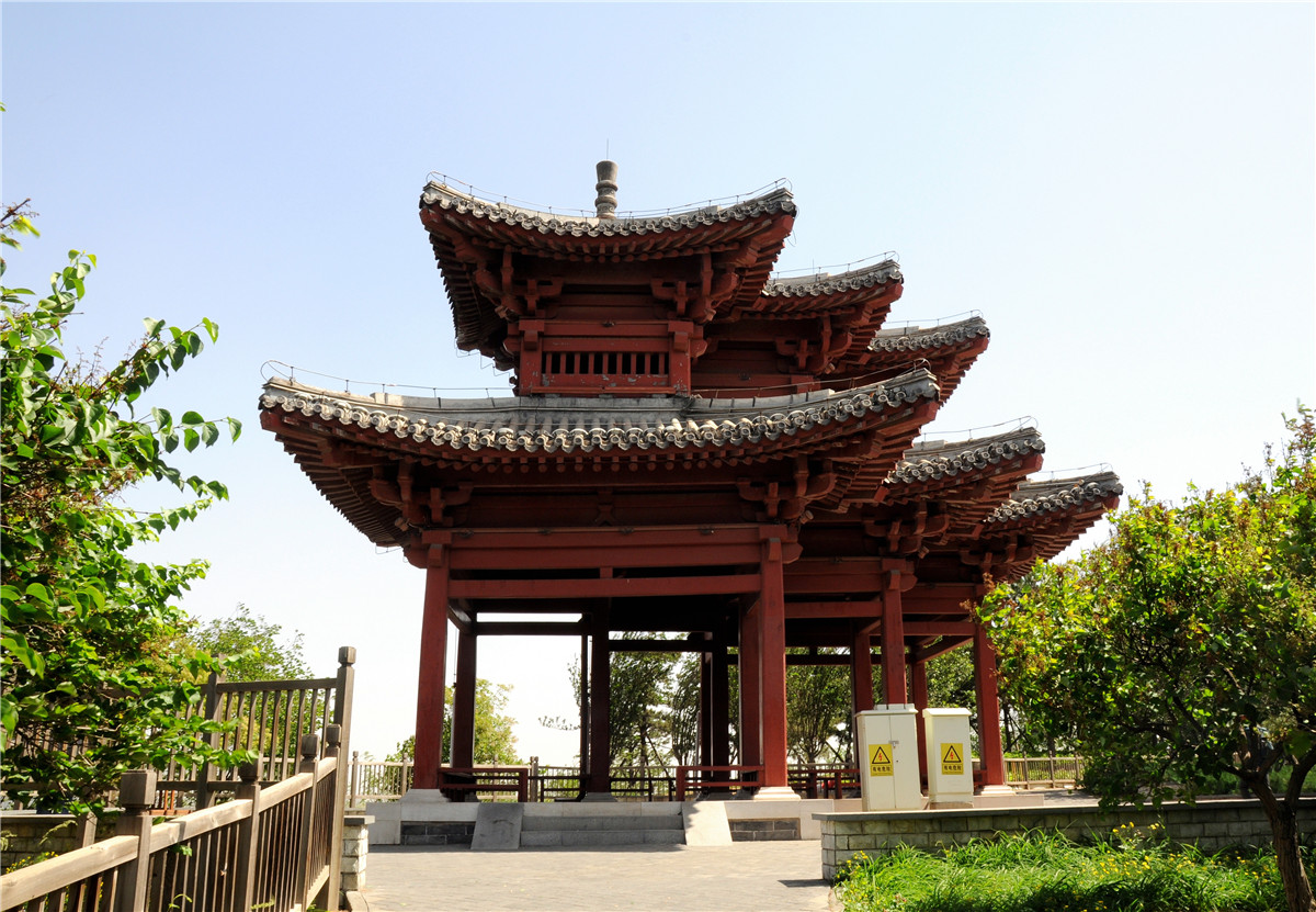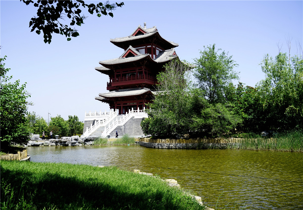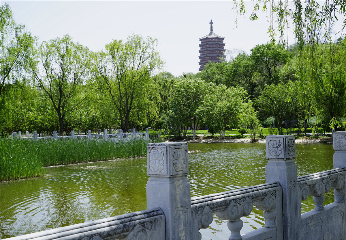 园博园地标性建筑永定塔也曾是我们在游览永定河休闲森林公园时抬首可见的坐标。屹立在鹰山之上的永定塔,是目前北京地区最高的具有浓郁民族风格的仿古高塔。可惜由于疫情期间为避免游人近距离接触,永定塔暂停运行,无法登高远眺。