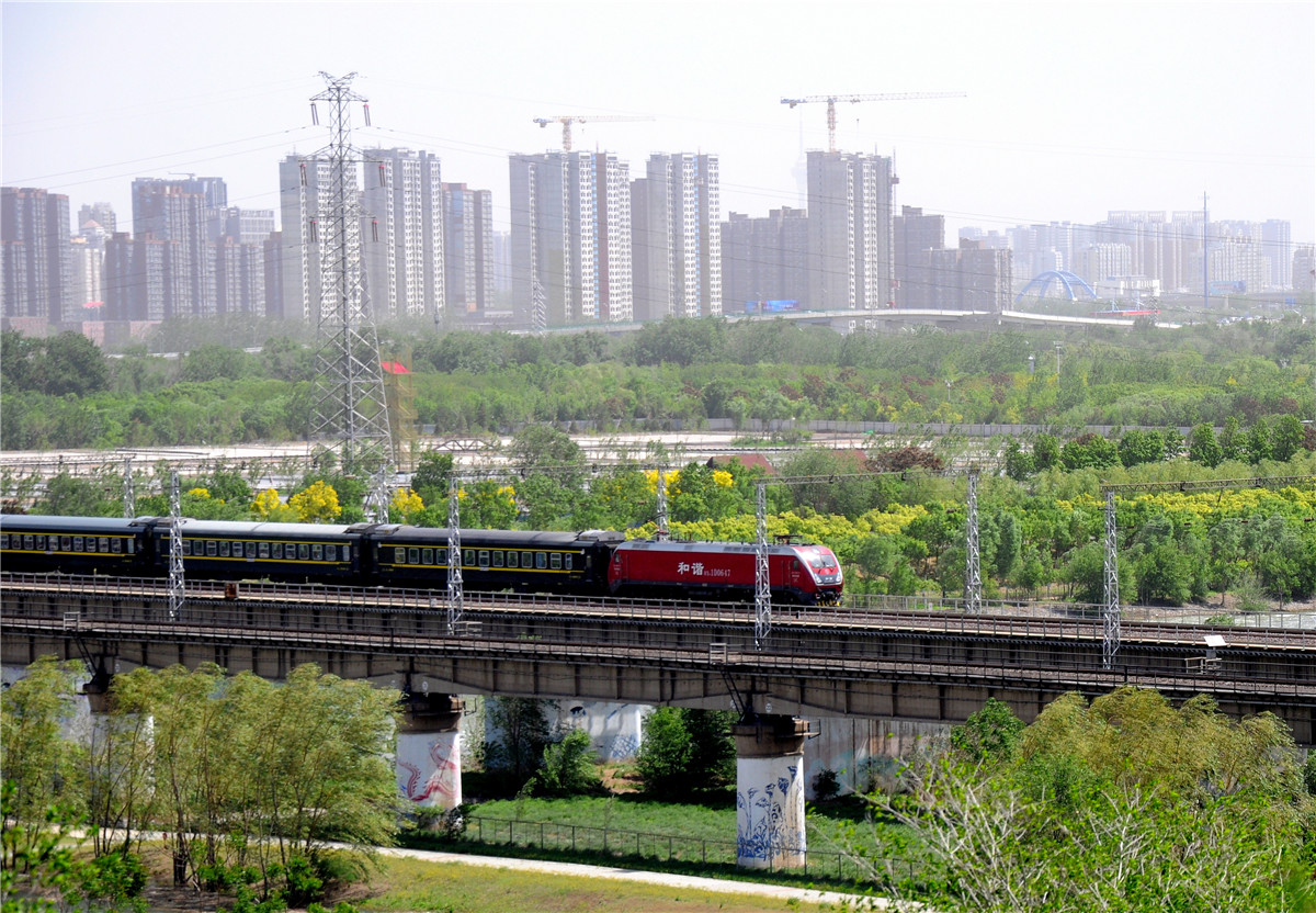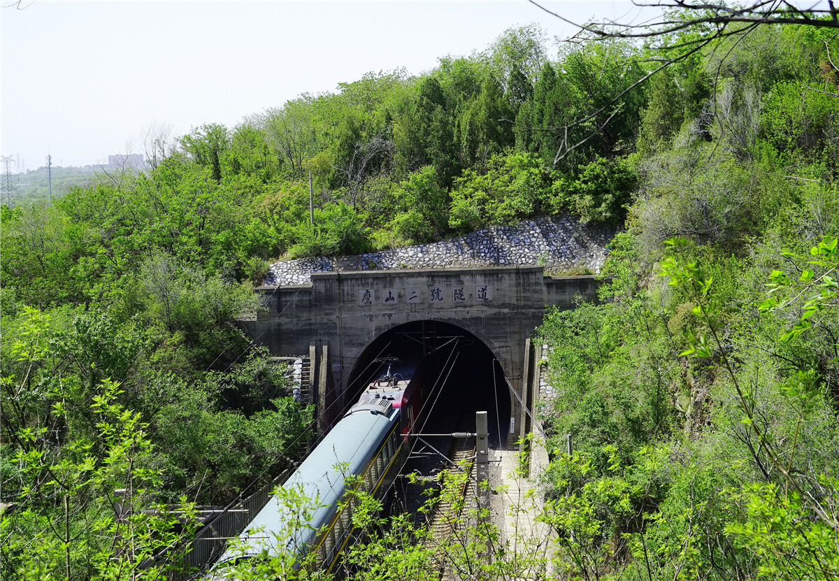 徘徊在园区,鹰山隧道中穿行的火车以及京原线上奔驰的列车,让我想起在永定河休闲森林公园也曾经看到这样画面,只是角度不同而已。