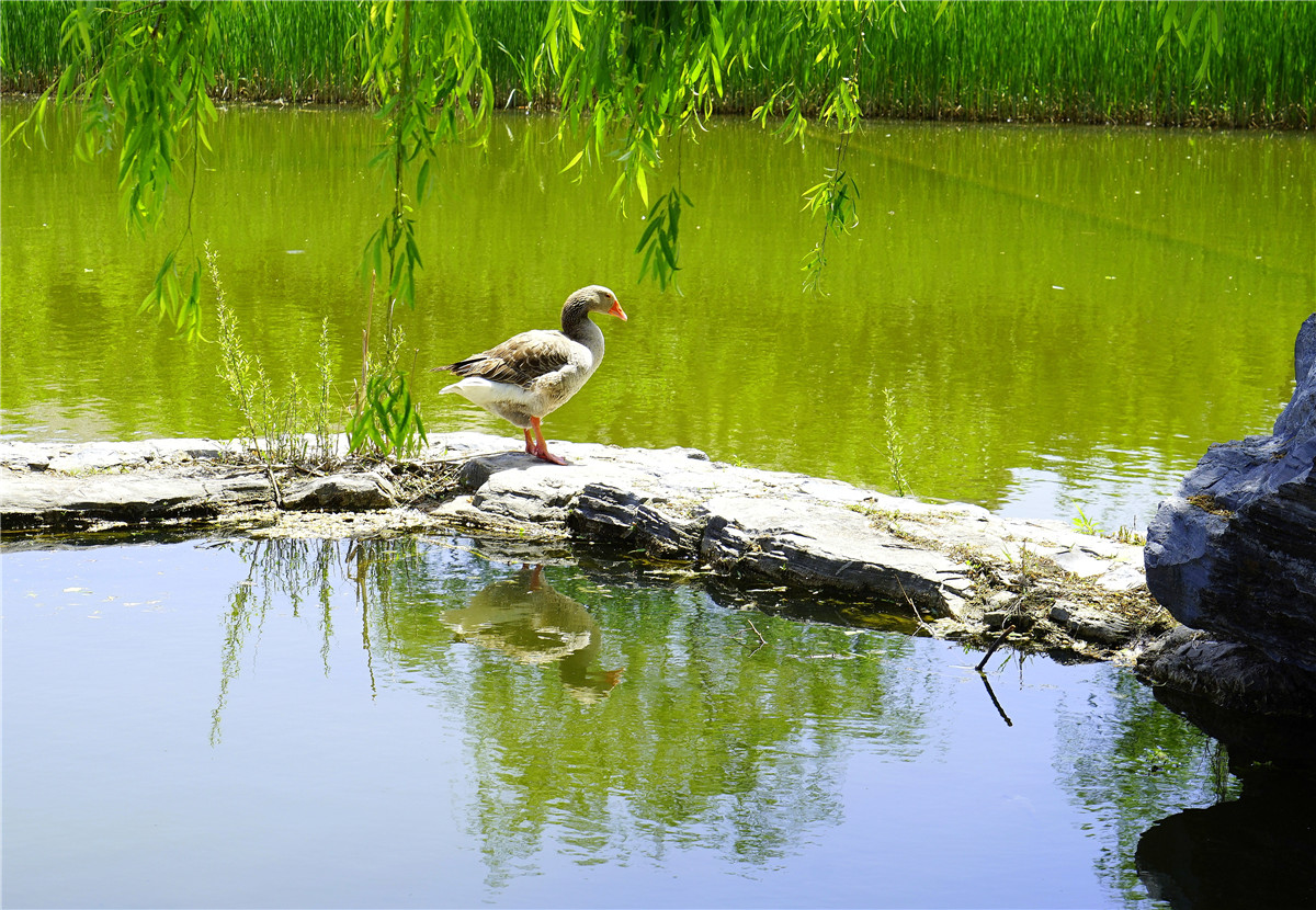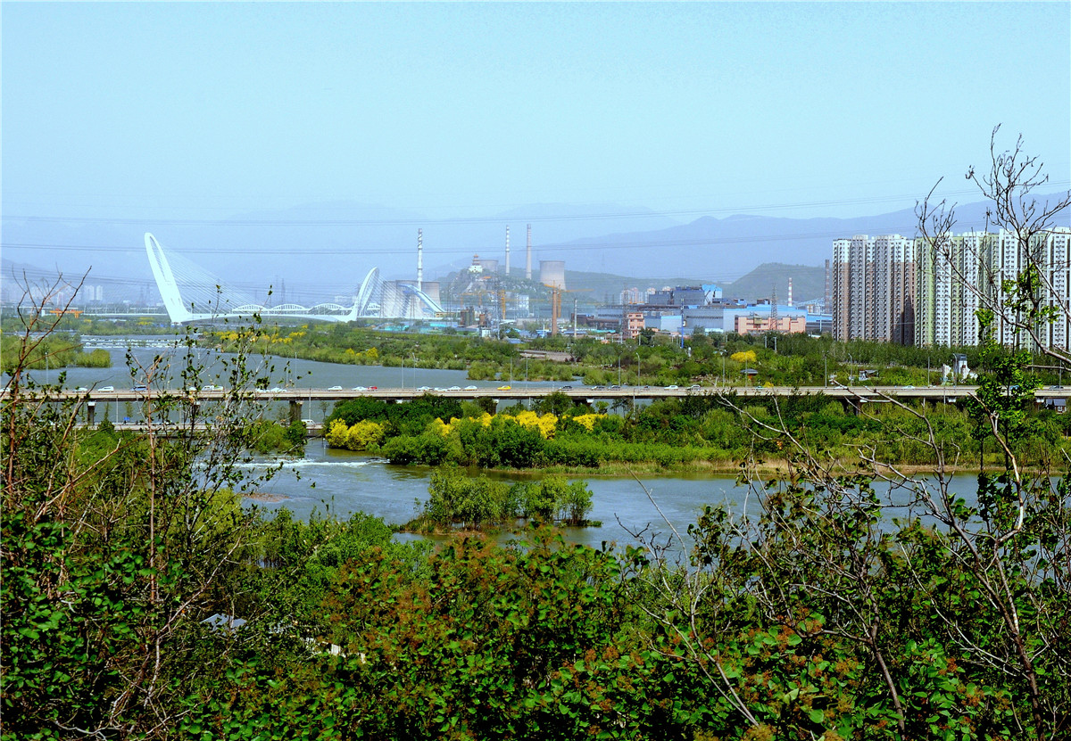园博湖距莲石湖、永定河休闲森林公园很近,站在园博园文昌阁下可以清晰地看到莲石西路穿梭往来的车辆、莲石湖一潭绿水以及远方新首钢大桥。徘徊在园区,鹰山隧道中穿行的火车以及京原线上奔驰的列车,让我想起在永定河休闲森林公园也曾经看到这样画面,只是角度不同而已。