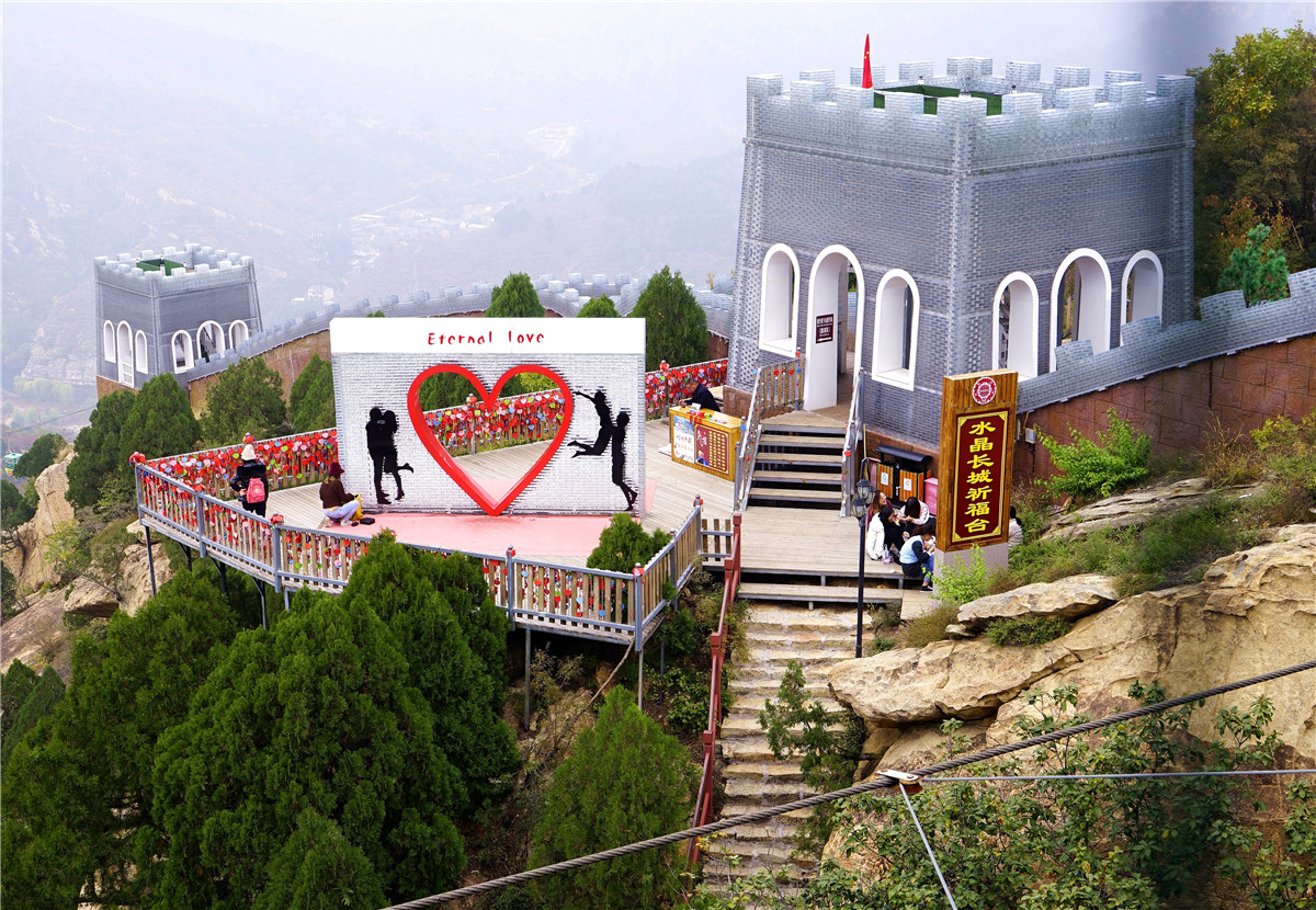 在京郊密云清凉谷景区,有一处彰显爱情、友情的温馨之地——水晶长城祈福台。