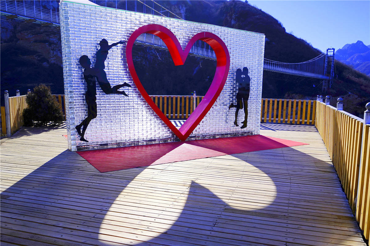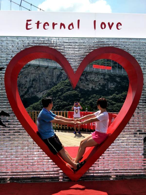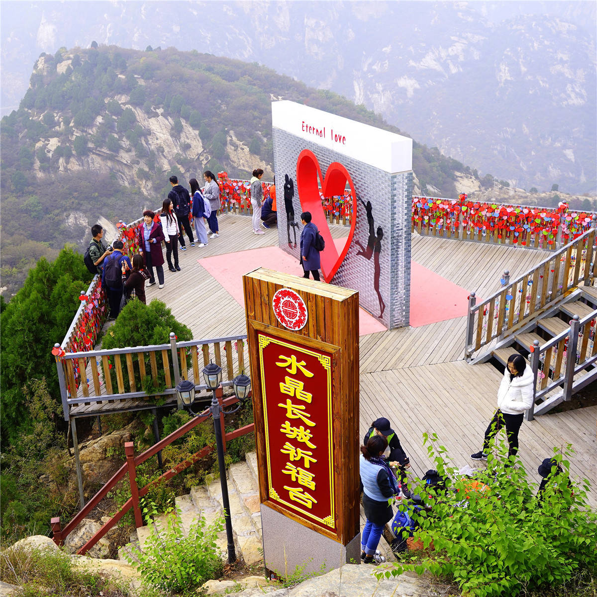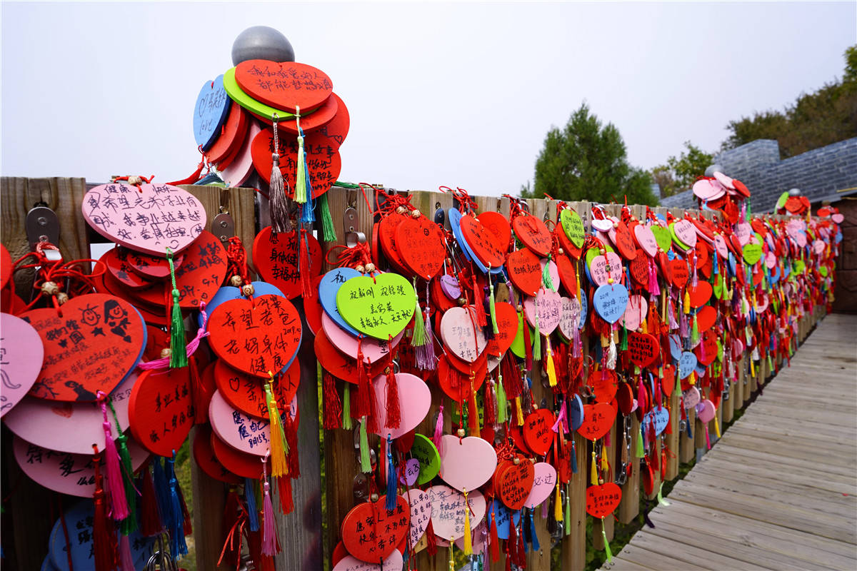 在京郊密云清凉谷景区,有一处彰显爱情、友情的温馨之地——水晶长城祈福台。在这里每天都在演绎着各种版本的故事,每天都充盈着挥洒青春的爱情画面:求婚的小伙儿、洋溢着满满幸福的一家人、到此一游合个影的小情侣,还有那挂满栏杆,记录下人们心中美好愿望的祈福牌……
