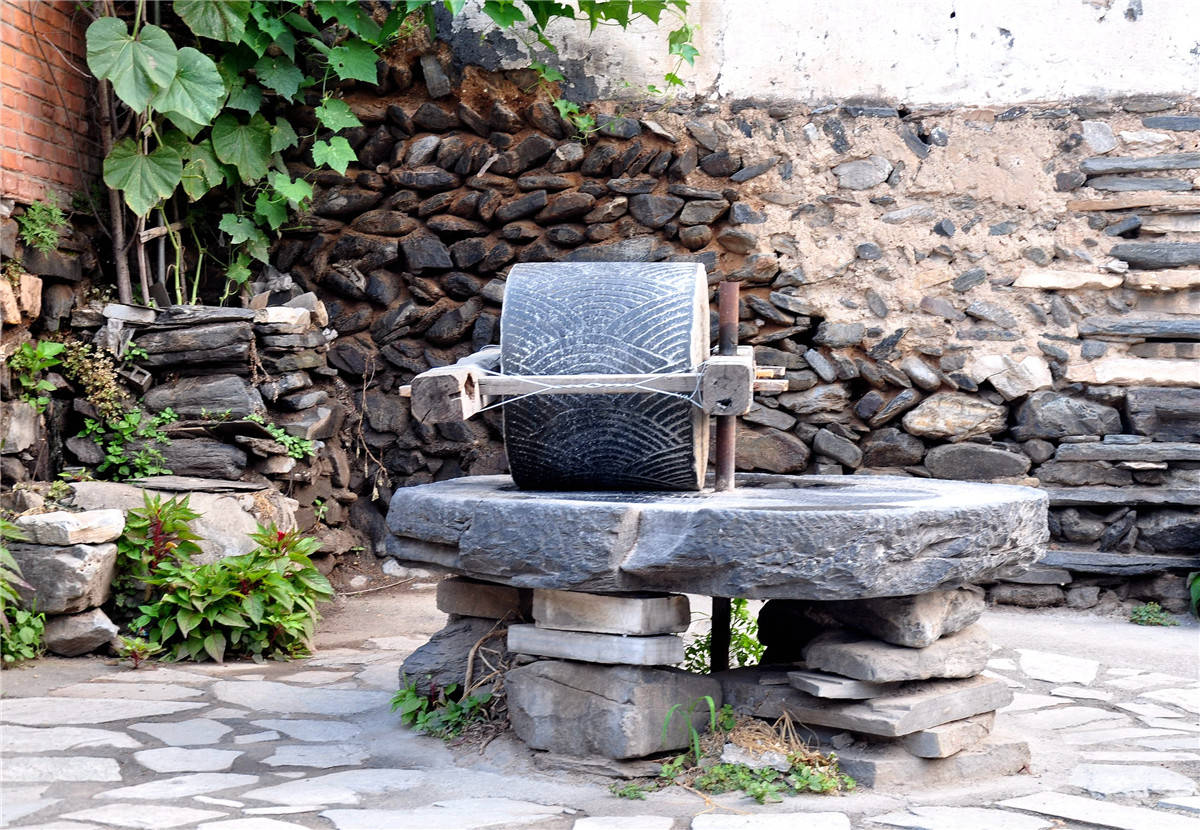 在村子的各个角落,都能看到不同年代的石碾子。村民们告诉我们,全村共有128盘石碾子,至今还能看到石碾子在上岗工作,碾压玉米。别看石碾子外表上长得一个模样,仔细端详,细微之处还真各不相同,每盘碾子所处的时代也不尽相同。