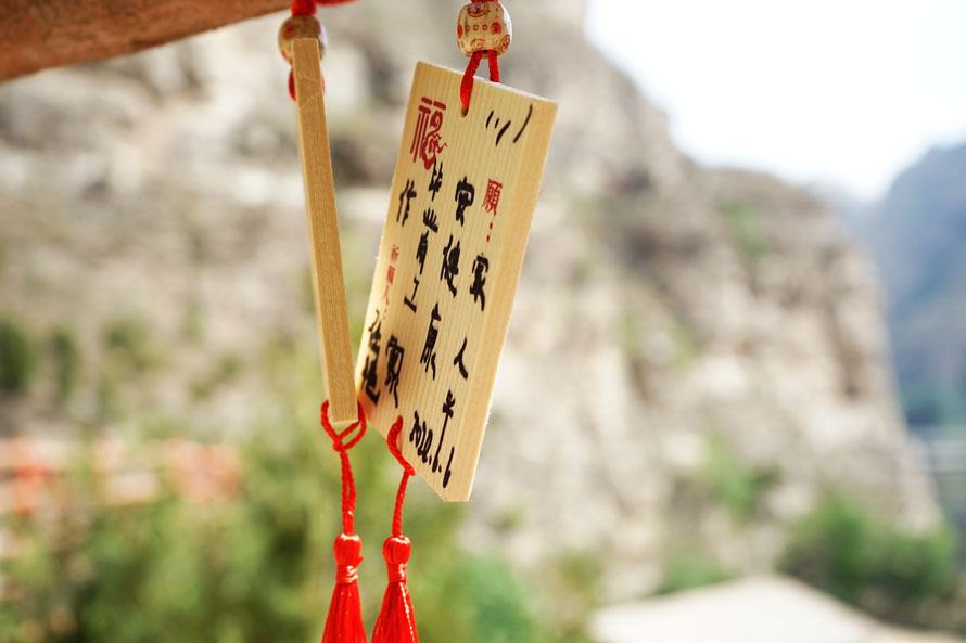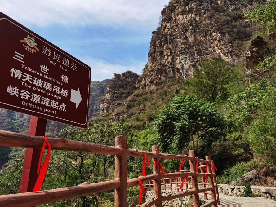 乐谷银滩可游玩项目颇多,如果你安排的时间比较充足可以选择一条具有闲情逸致的路线,优哉游哉地漫游一番,看群山巍峨,听飞瀑流泉,还能遇到“轮回台”的三世佛,比如景区里那一条横穿朝天沟的“祈福”线路,沿途的红绳结和游客写满了祈愿的小“福牌”在清风中摇曳,看一眼便心生一种美好的情愫,因为陌生,我们互不打扰,因为陌生,我们或许会相互祝愿;虽然不知道那些抒写祈愿和梦想的人是谁,但是却因为踏入同一条小径,我们从此有了呼应。