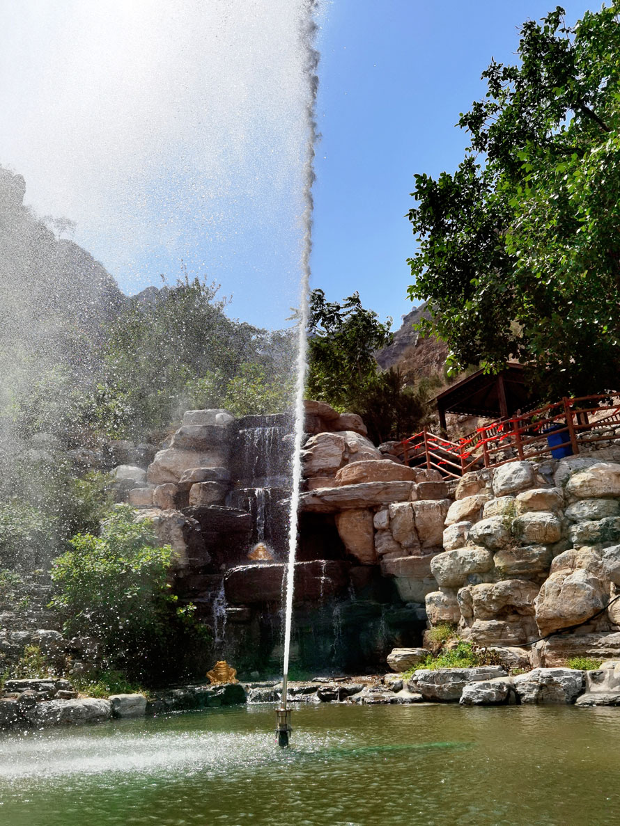 “祈福”线路的起点处有一汪泉,叫“喊泉”,如果你从此经过,大约能看到有人在泉水前大声叫喊,随着叫喊人的气息强弱,“喊泉”的水柱会随之起落,这个其实考验的是人的“底气”,也就是丹田之气,很多人看起来粗壮结实,但其实在玩这个“喊泉”的时候就漏了气,出来的水柱还不如一个小孩子高,然后引得众人哈哈大笑。