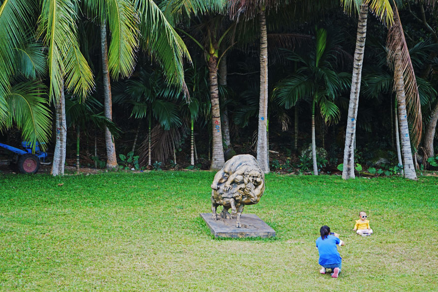 椰林或许是这个村子最强大的存在,房前屋后,绿地池边都是遮天蔽日。一处草地上,一个母亲带着孩子玩耍、拍照,他们自然也成为我风景的一部分,那种悠闲与淡然,祥和与欢乐氤氲每一寸时光。