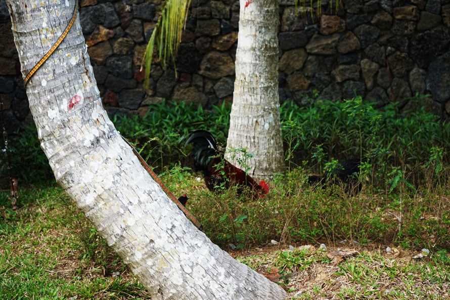 风过叶眉,发出沙沙的声响,一只老母鸡在椰树下独自觅食,在如此和谐的环境里,看到这只鸡我居然想到的是把这只鸡抓住宰掉,清炖或者爆炒,想必会非常美味,这是不是有点罪过……