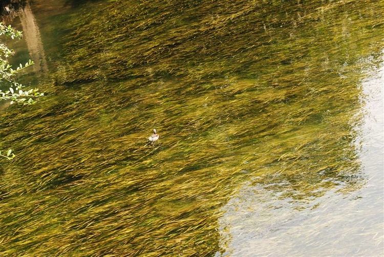 水流清澈,茂盛的水草顺流摇摆,河水中央大片大片的灌木丛不时有飞鸟停留,或者扑棱棱飞出,野渡无人颇感神秘。