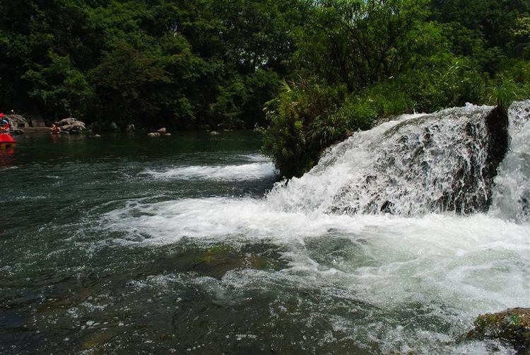 尤其是到了大河中间路段,水映碧蓝,清泉布满视野,那哗哗的水声仿若天籁,沁人心脾的愉悦使人想要拥抱什么,更准确地说是有一种想要跳下去的冲动。