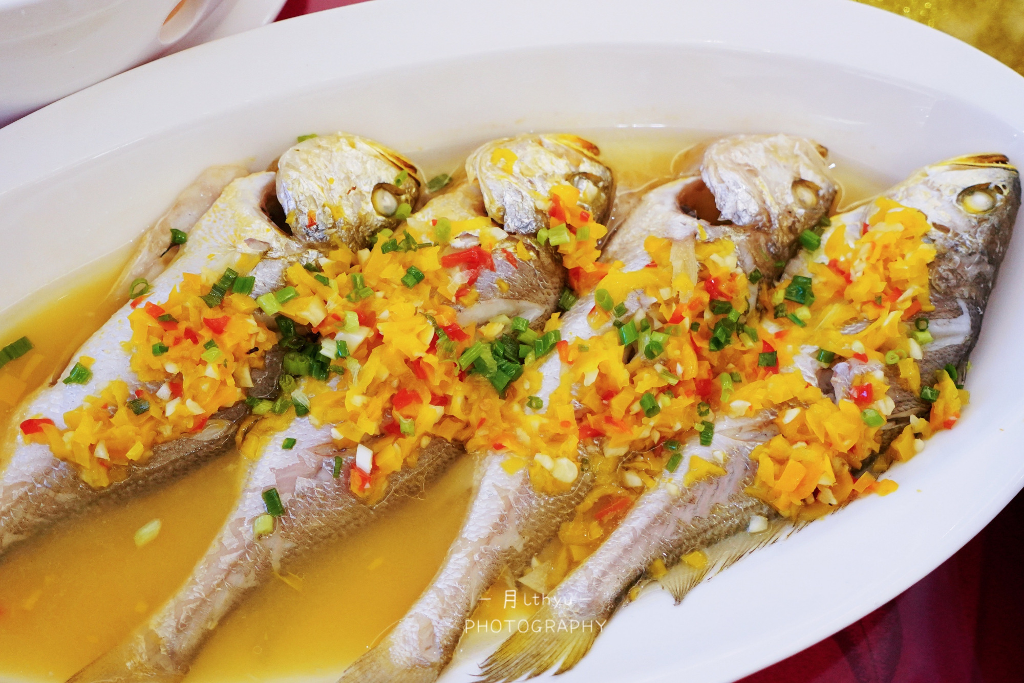 黄椒小黄鱼,这里的酱料都调得很棒,带着淡淡甜味的黄椒酱与黄花鱼肉一同入口,鲜嫩中带着酱香,萦绕在整个口腔中。