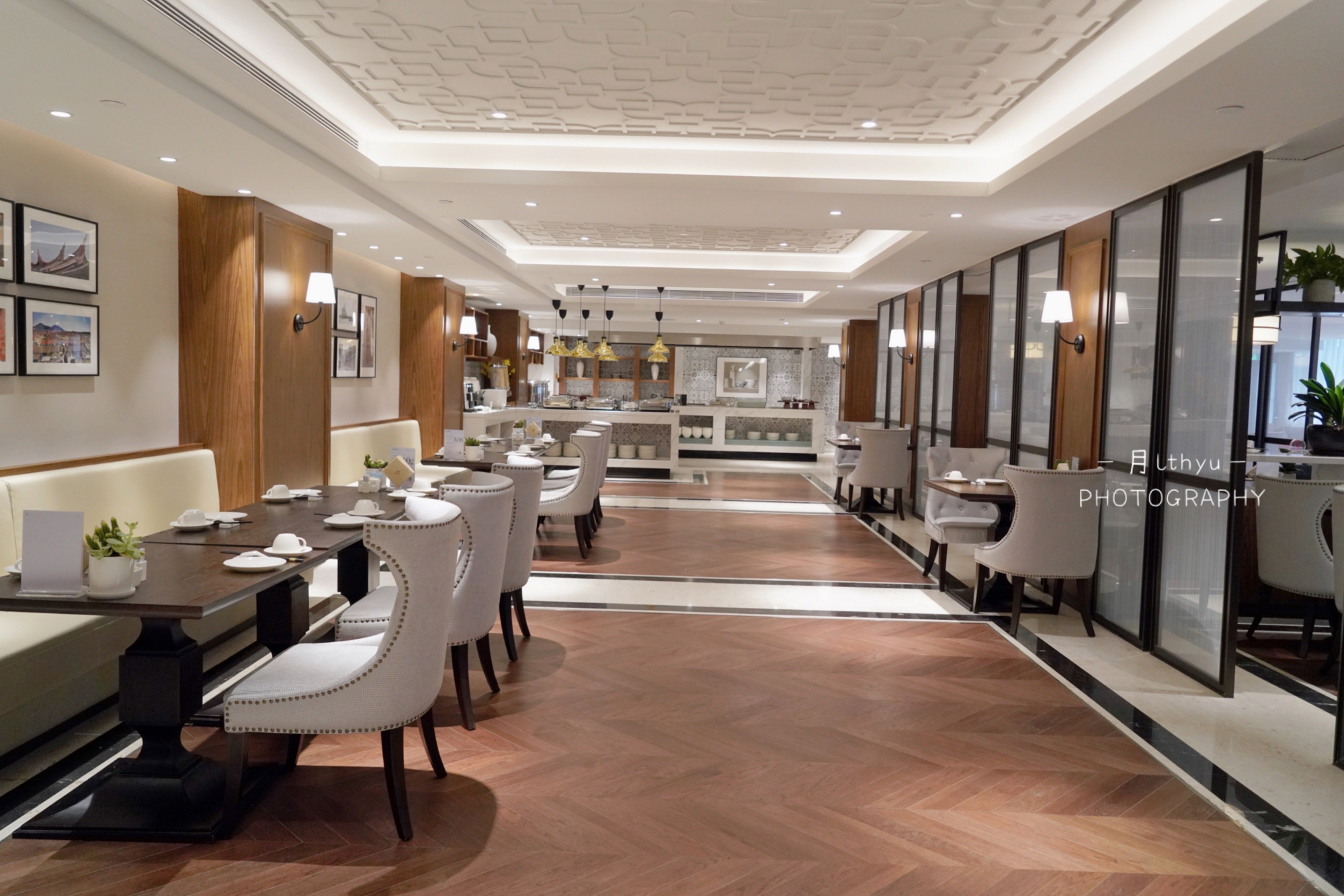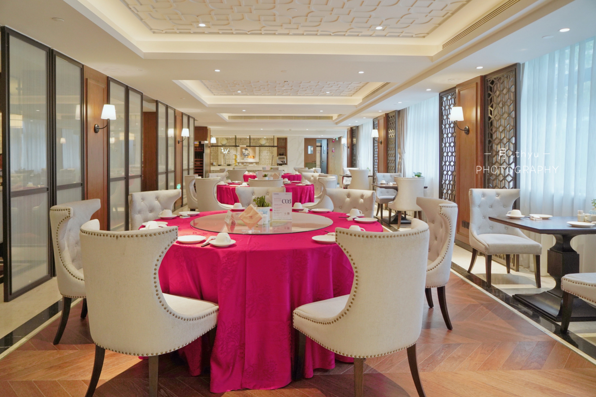 当然这时中餐厅的闽菜也做得非常棒,提前预定包厢都没了,只能选择大厅,这里的大厅有着两处,一个是自助餐处,一处与包厢相连,这里常有人包场办宴会,刚巧这天也被包场了。于是去了自助餐的区域,这里也有着圆桌、卡座、长桌,环境也是相当喜欢的。