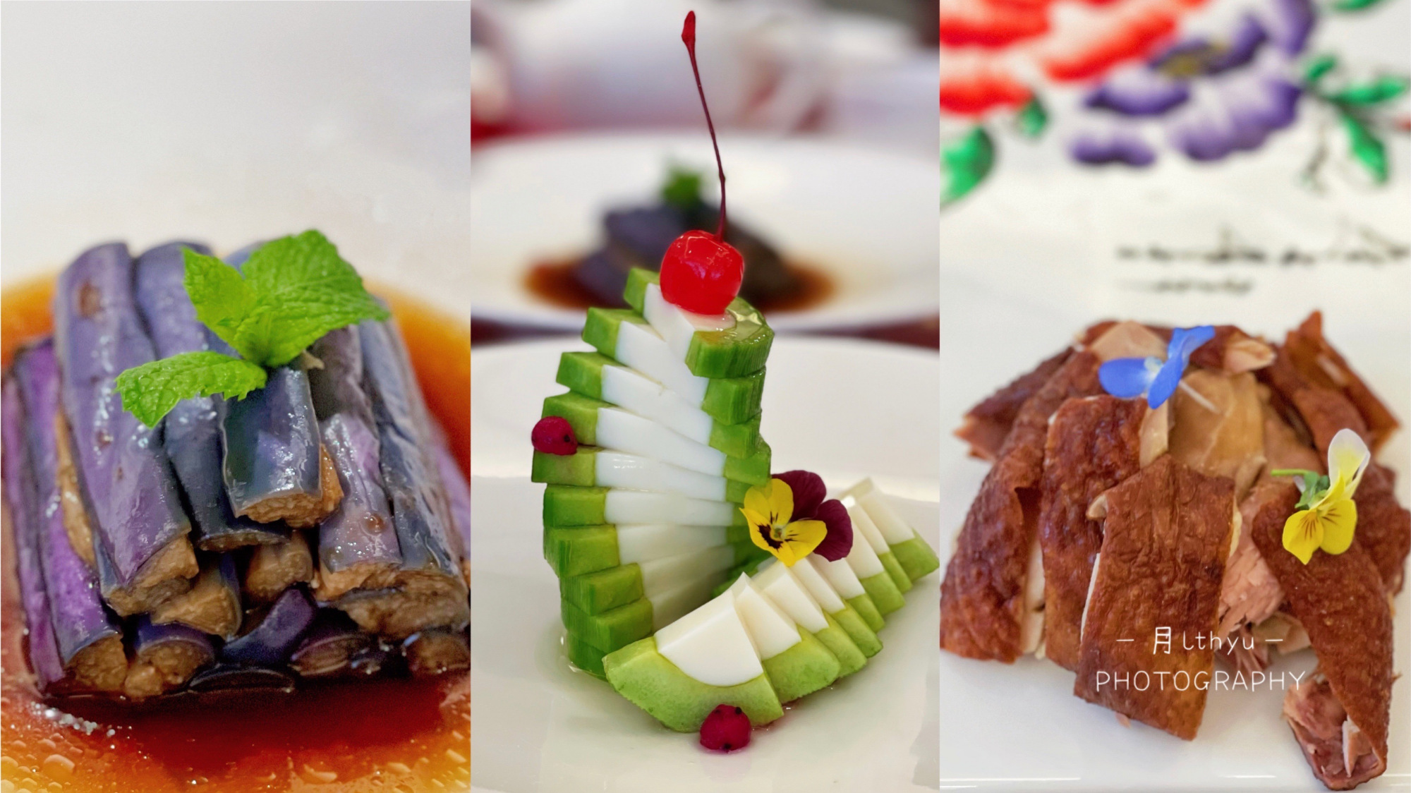 凉菜先来,据说都是新品:脆皮鸡、美极广茄和奶香羊角蜜。超爱的是美极广茄,独特的酱汁与脆爽的茄子融合一体的美妙口感,一口惊艳。