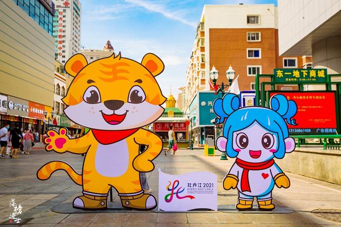 旅发大会的吉祥物“虎娃”和“雪妞”在街口欢迎着游客,给人以东北人的热情豪爽和东北气候的凉爽舒服之感。牡丹江东一中俄风情街是省旅发大会的观摩项目,如果说东三省在旅游方面有什么是其他地区少有的,毗邻战斗民族俄罗斯,有着浓郁的俄式风情必然是其中一大特色。