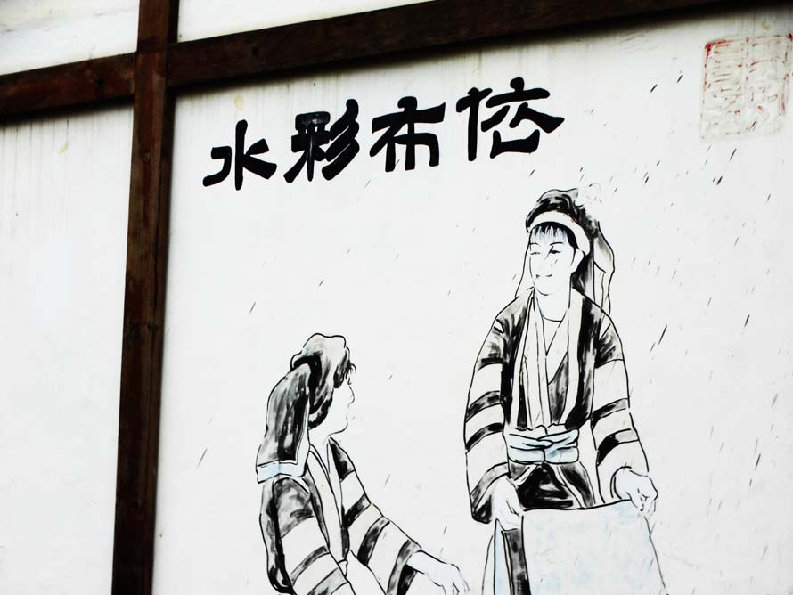 在牛角村几百平米的民俗博物馆里,收藏了数百件布依族的古老用品。古老的手摇织布机及布依蜡染,见证了这个民族骨子里对美丽服饰的追求和向往;布依七弦琴的古老韵律,与对萧的天作之合,仿佛演绎了一曲新时代的高山流水。低头俯瞰布依族房屋演变的模型,我知道了落别布依族背靠青山,依水而居的生活习性。简陋的茅草房,让我想到了他们的单纯和质朴,从瓦房到小平房的巨变。