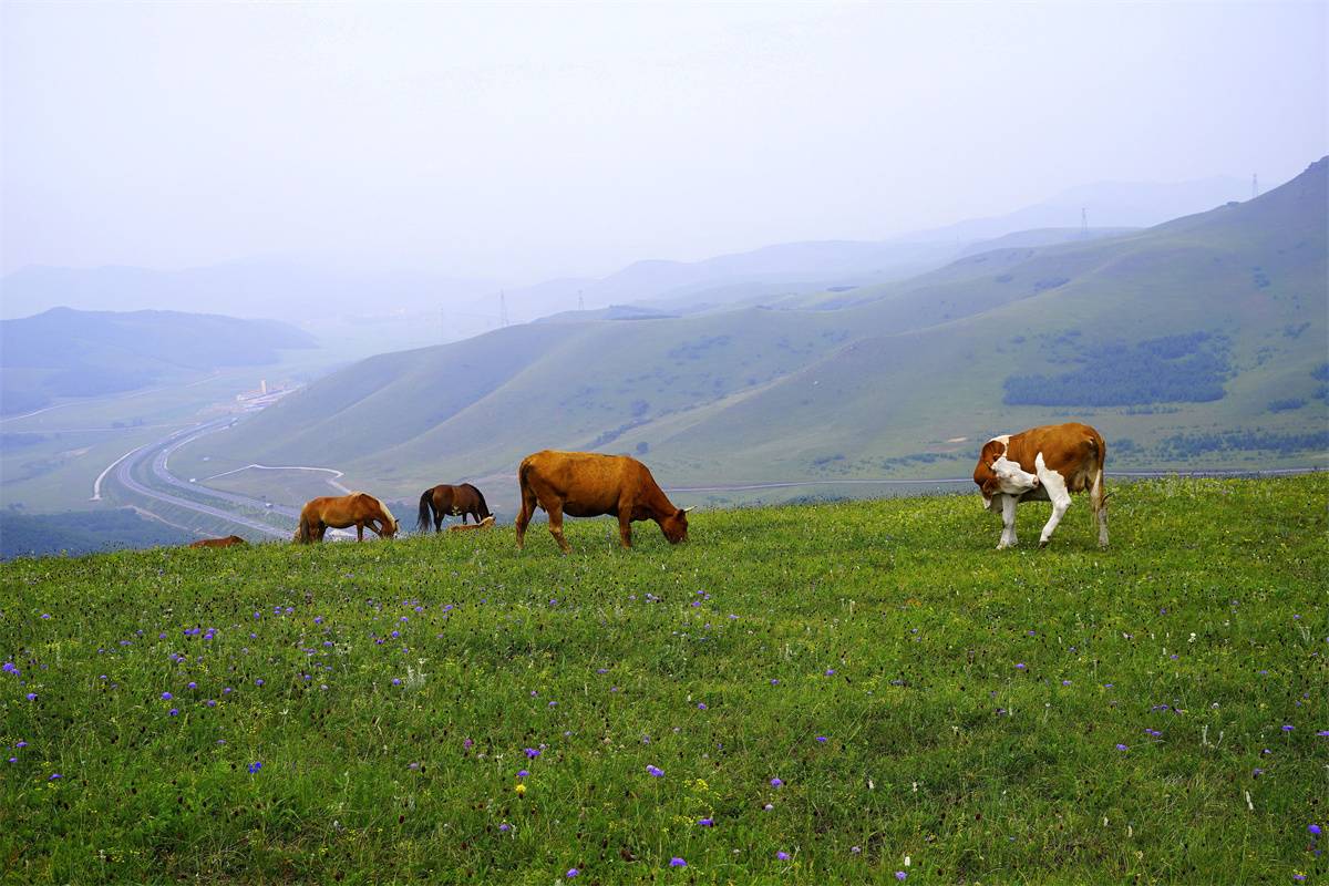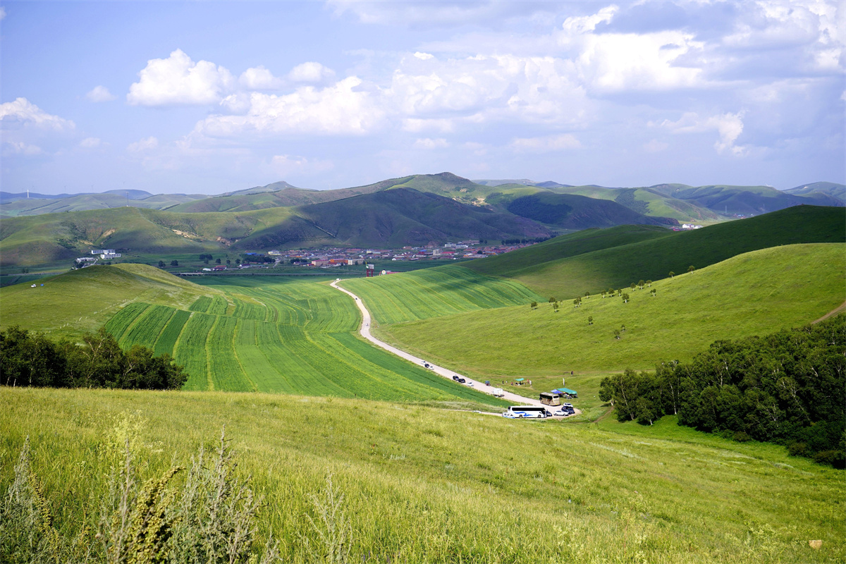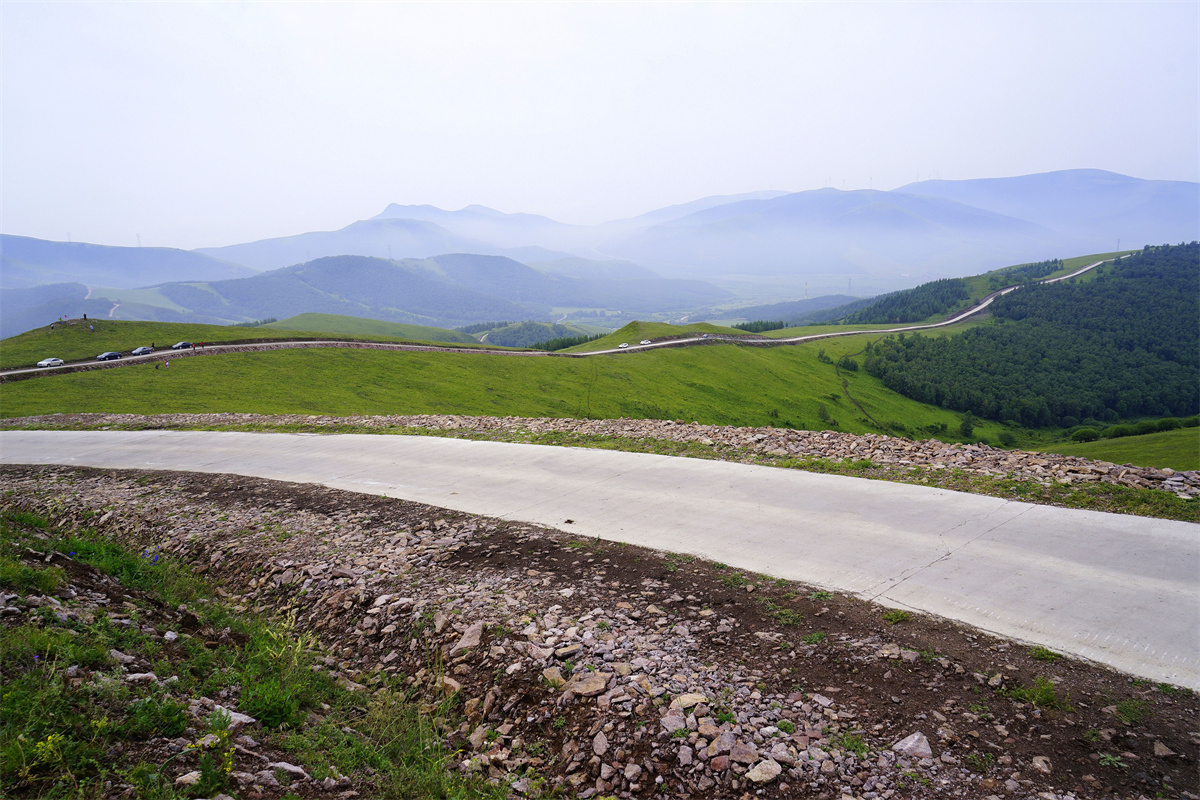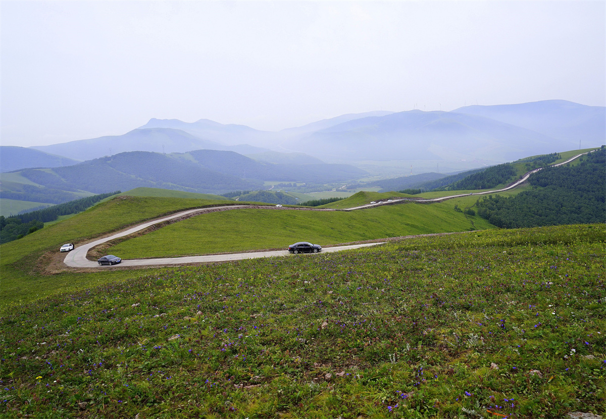 驱车进入河北丰宁县的京北第一天路,眼前闪现着有着圆润线条的山坡,绿色的草坪,随风摇曳的野花以及伸向远方的天路。
