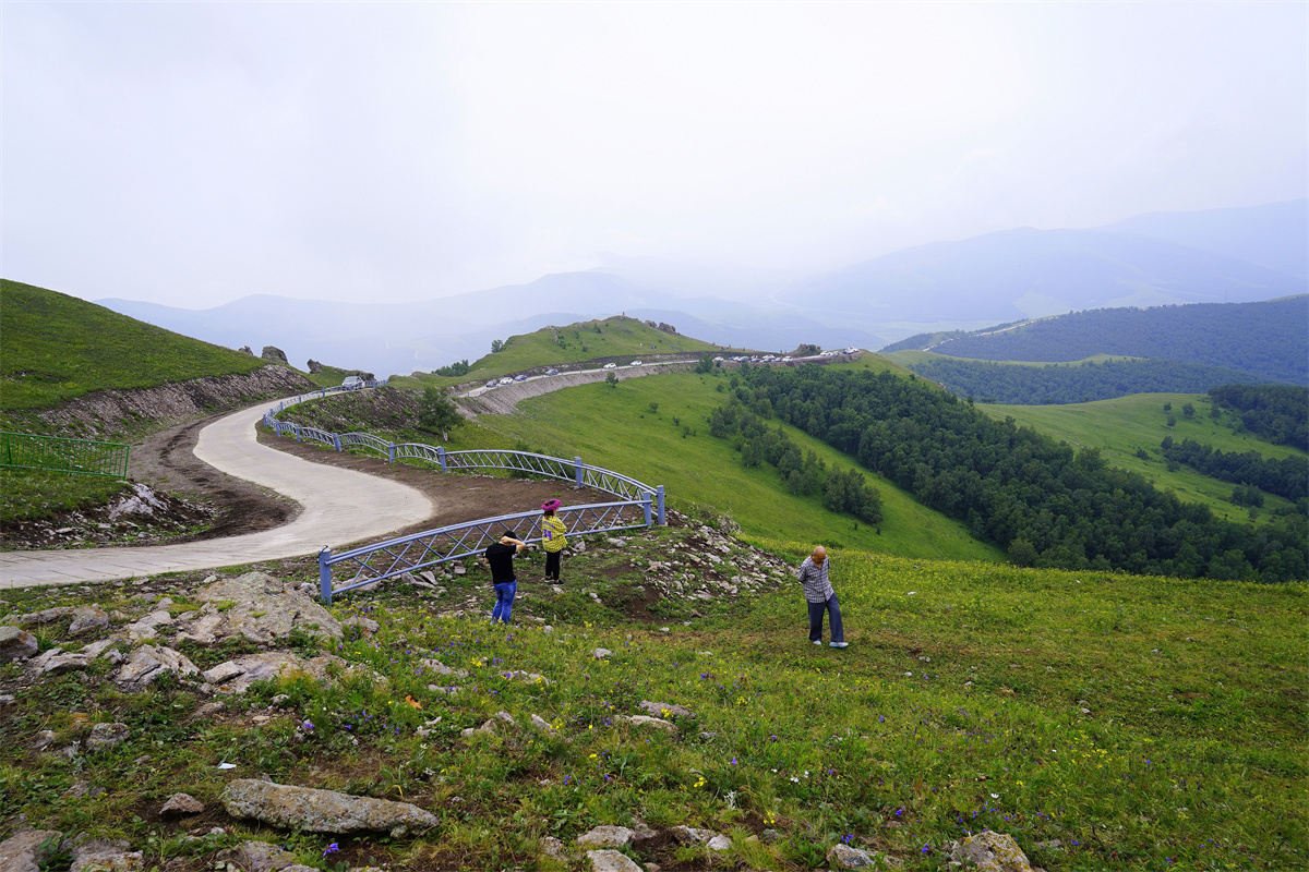 盘旋在天路的各色车子或轰大油门,像头猛兽冲上山坡;或沿着山路缓缓而行,游人吸吮着散发着植物芳香的空气,目视着生活在花草丛中的鸟儿、小动物们的身影,与大自然来一次亲密的接触。这条通往天边的玉带路上,每天都有着来来往往寻觅草原美丽风光,寻觅夏日酷暑中难得的清凉,寻觅绚烂秋色的旅行者……夏秋时节,你去了吗?