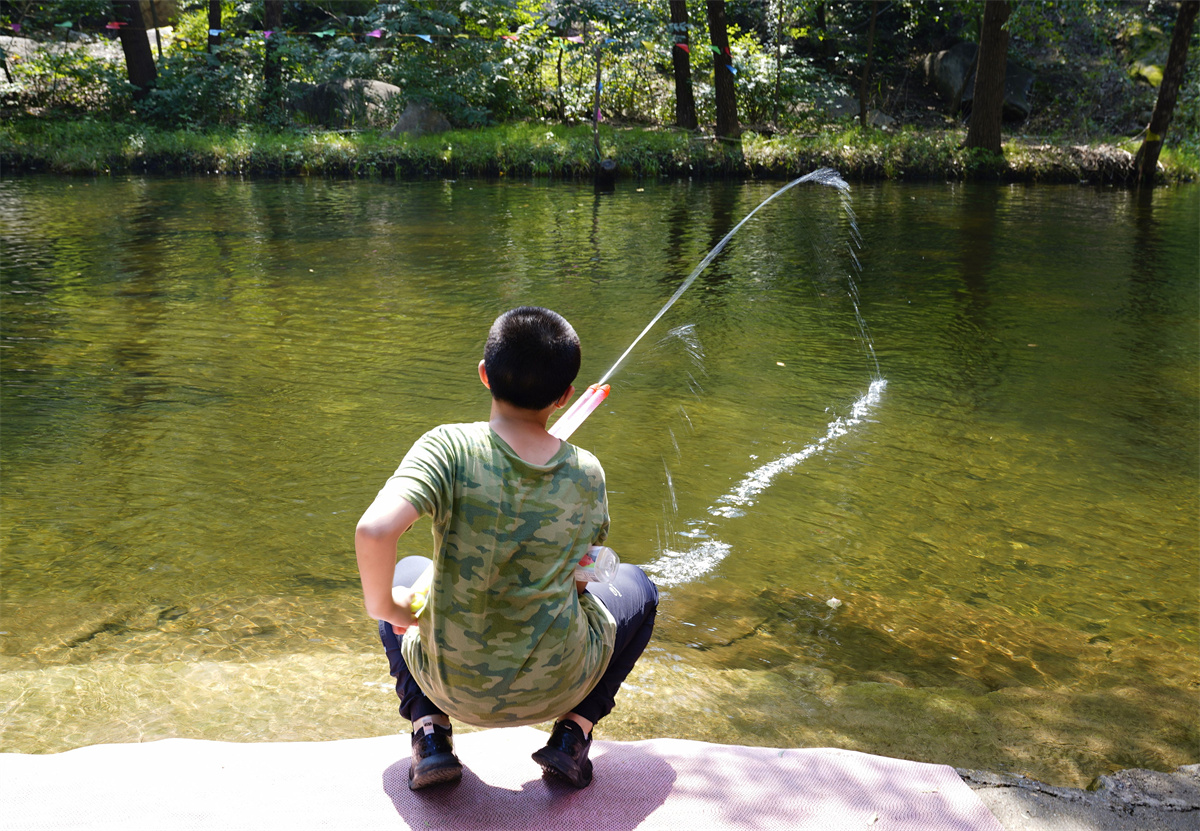 山谷中这条平坦的观光山路让家长们免除了遛娃的艰辛,也方便了那些腿脚不甚灵便的老人。沿着山路观山水,和娃儿潭中荡舟,人们感受到融入大自然中的那份惬意、轻松和愉快。