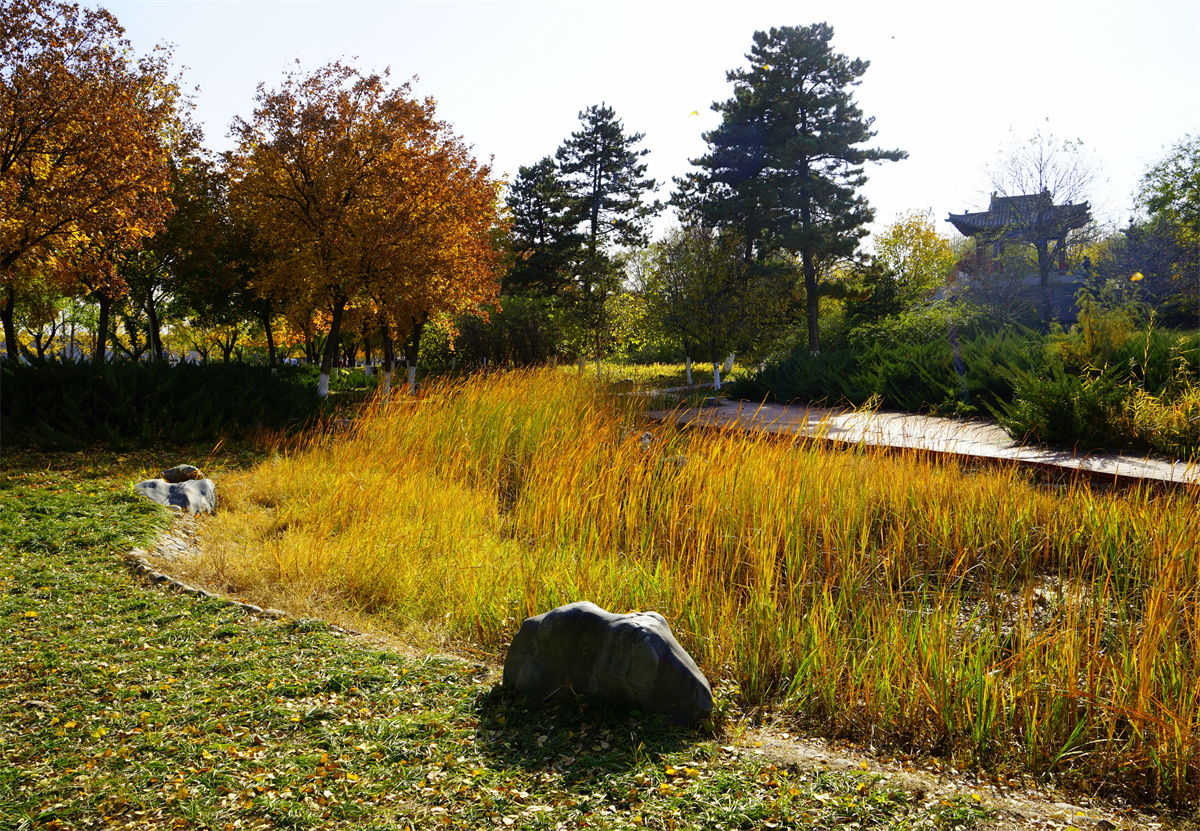 深秋时节,走进位于丰台区永定河西岸的北京园博园,满目浓重的秋色,枫叶的红,银杏叶的黄,彩叶随风飘落,点缀着具有地方特色的各个园林场馆,让人美不胜收……