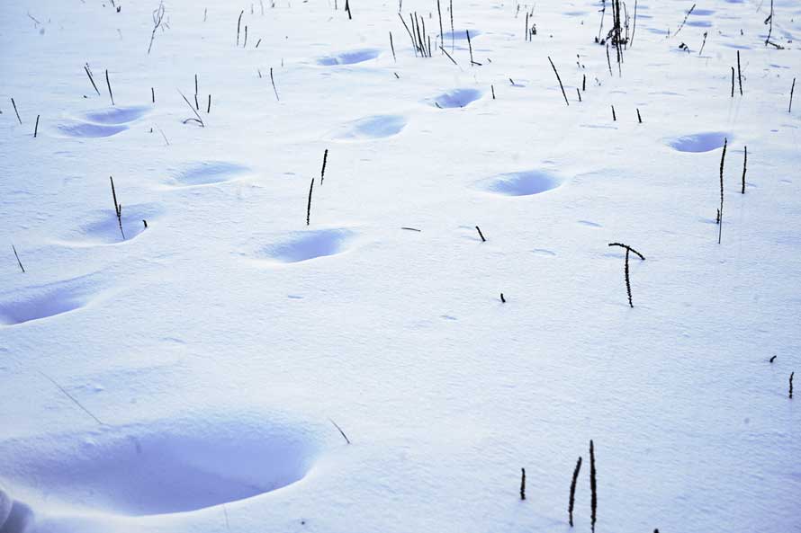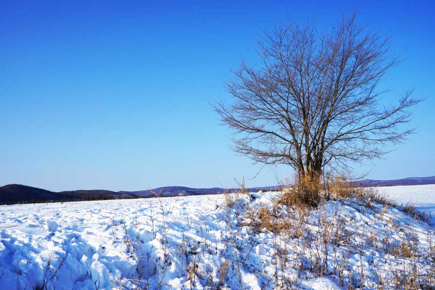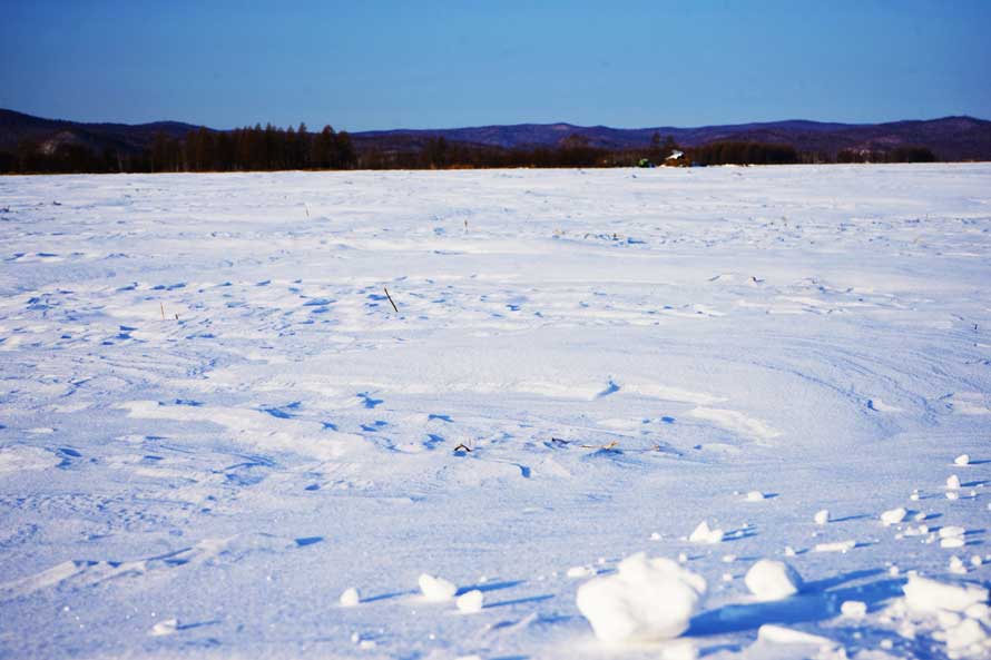 我们下车,一脚踏进了没膝深的雪地。雪原的大雪果然名不虚传,每一粒雪花都是大自然的造化,而这片大地与雪生来就是相依相存,林海沃野,吸收着宇宙洪荒,也释放着北国之绝美。