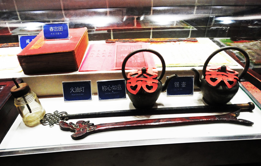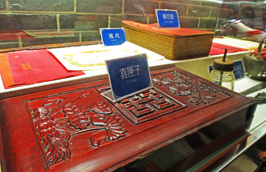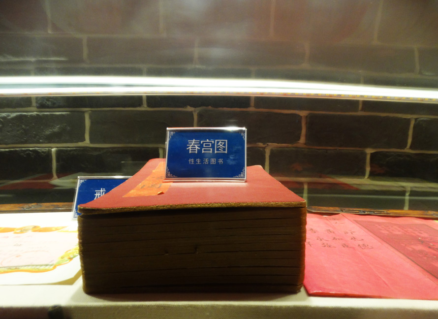 不过,在一处玻璃展柜里,有厚厚一册“春宫图”令人费解,后来才了解到,这是压箱底的嫁妆之一。原来,古代女子出嫁,“春宫图”女方父母给女儿的陪嫁物品,是性启蒙读物,被称为“压箱底”,秘不示人,不足为外人道,如果被夫妻以外的人发现了,那便是伤风败俗。貌似在这方面,我们老祖宗也挺纠结的,既需要,又不能明说,一说就错,但其实并没有什么错……