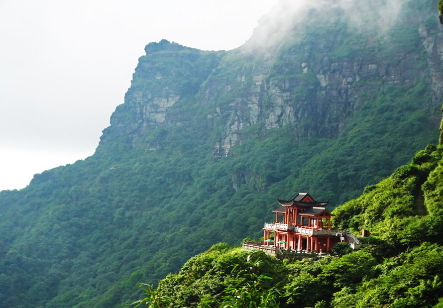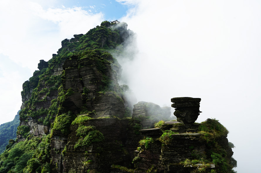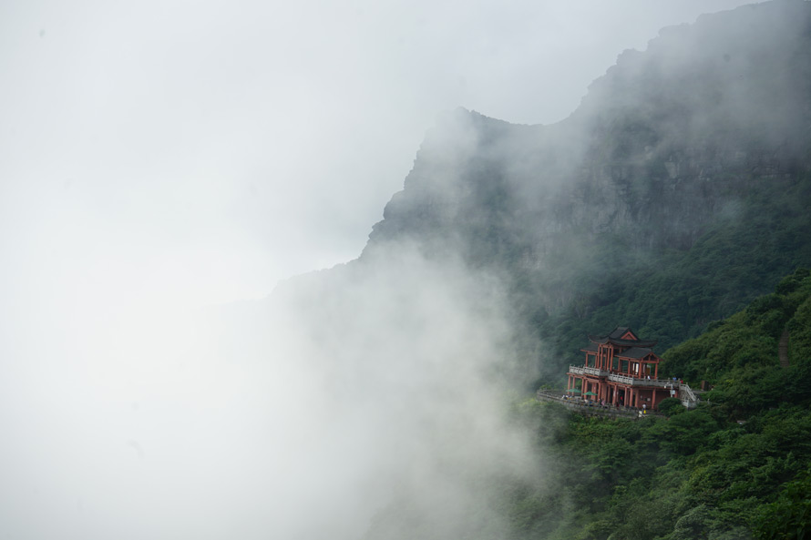 梵净山的美是层叠变幻的,步移换景,流云经过眼前的时候,视界一片混沌,但是少倾,云过之后,尤其是经过寺院建筑的时候,那种幻境陌生而真切。