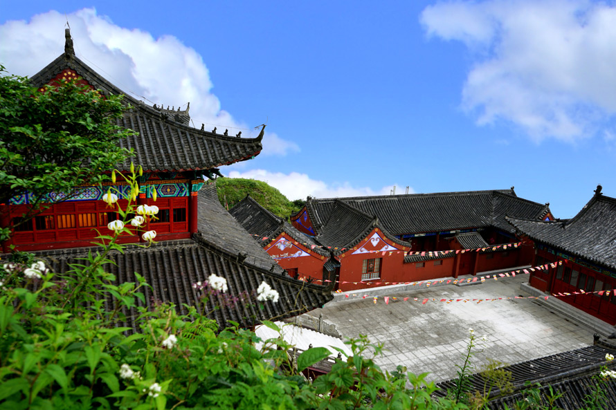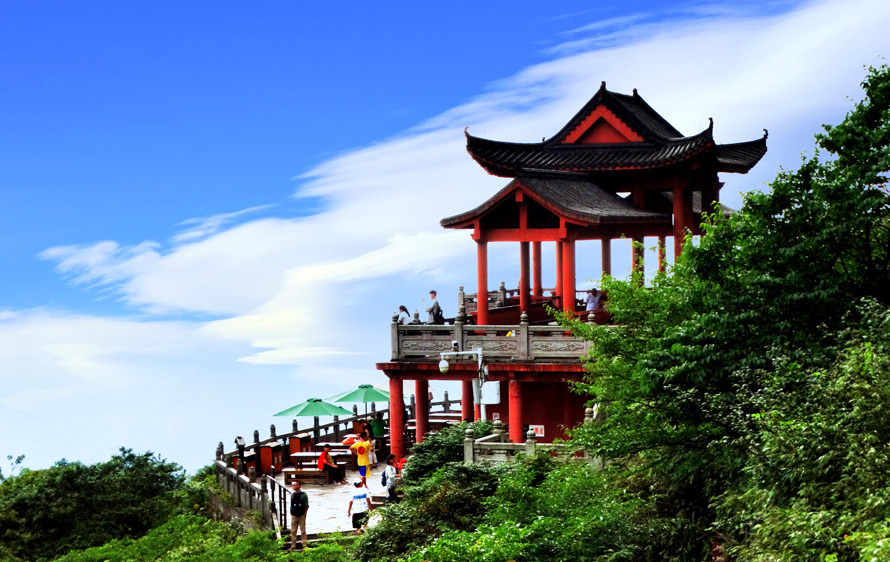 这里有新老两个金顶,新金顶在老金顶对面,海拔2336米,垂直高差达百米,是最险的一座,晨间经常被红云瑞气围绕,因此也被称为红云金顶,也被誉为“天下第一峰”。